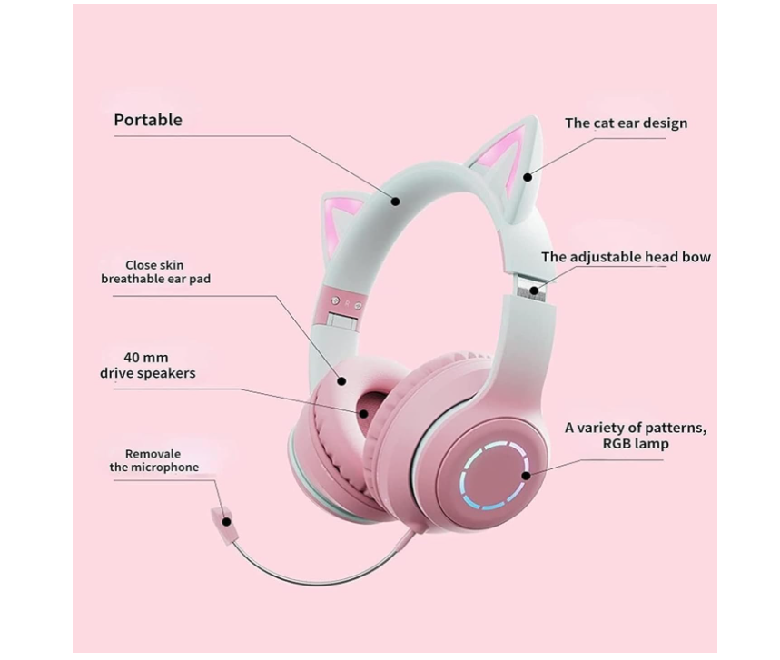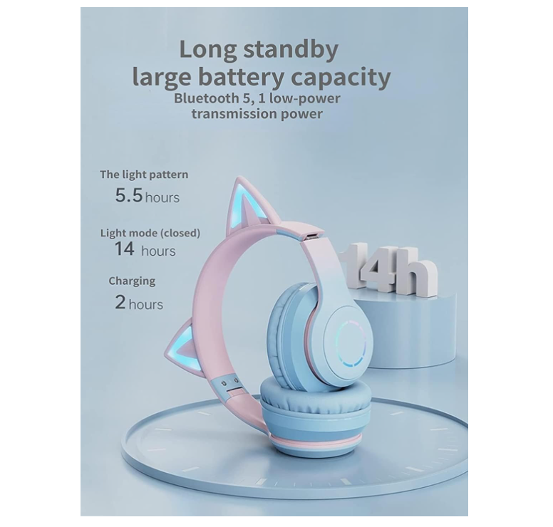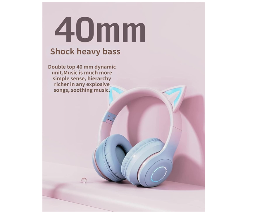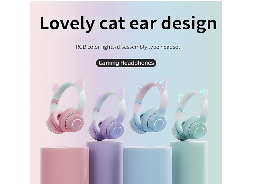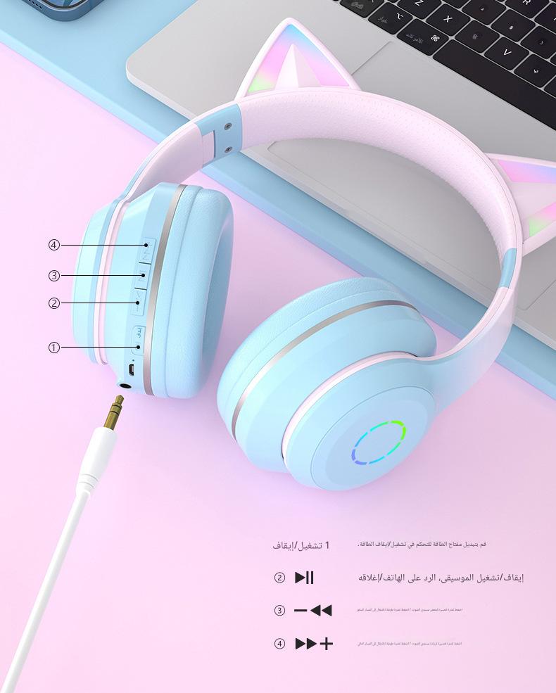 سماعات رأس لاسلكية بآذان القطط مع أضواء
