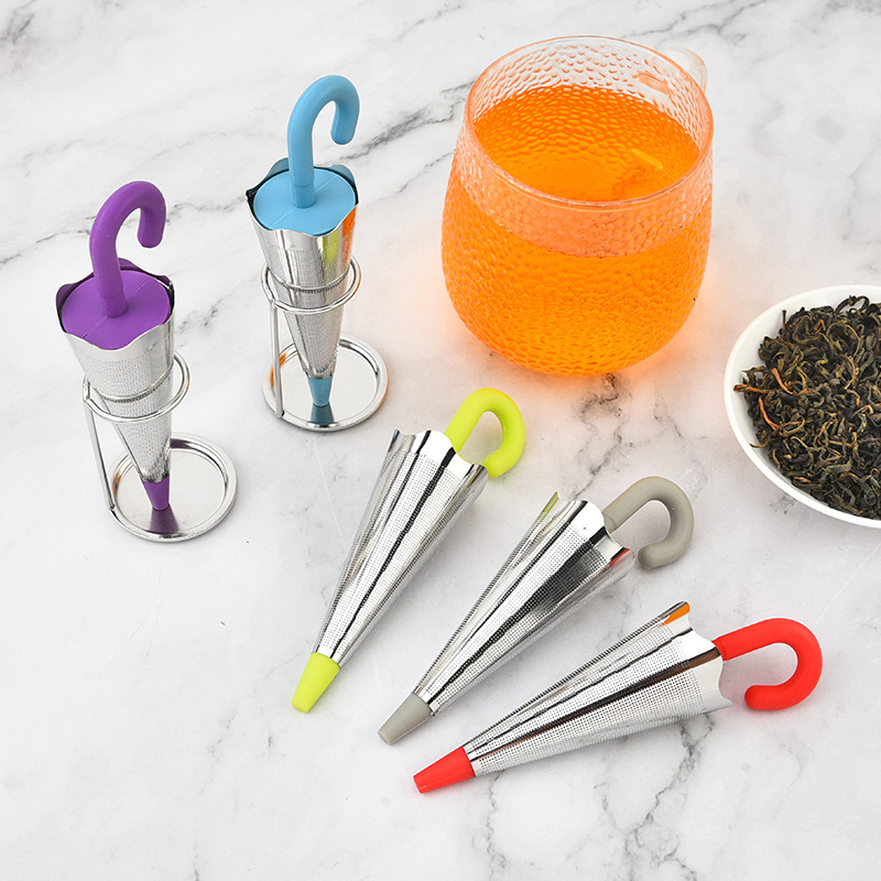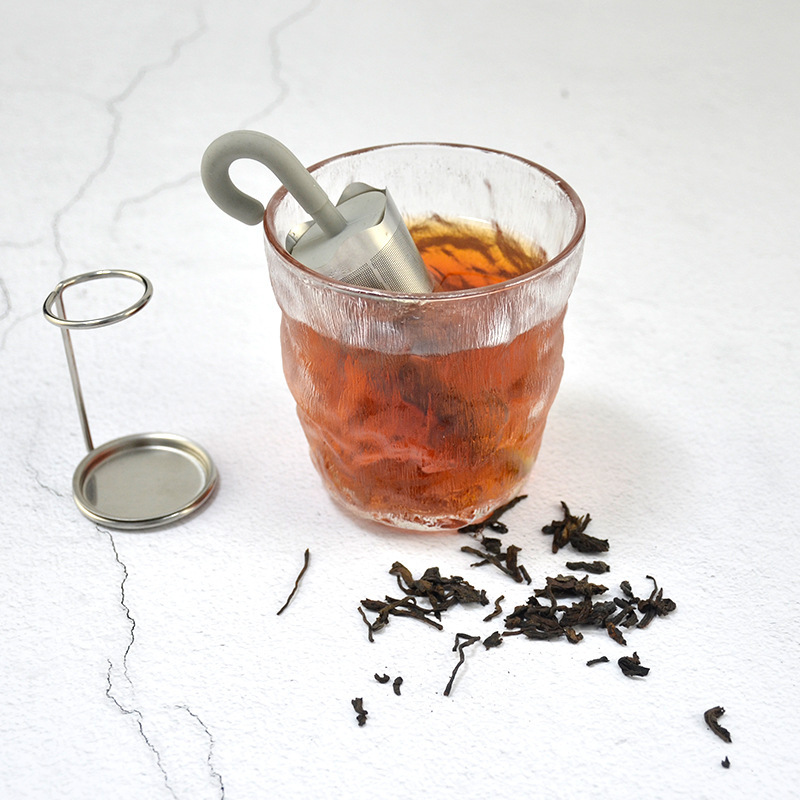 فلتر شاي من الفولاذ المقاوم للصدأ بمقبض من السيلكون