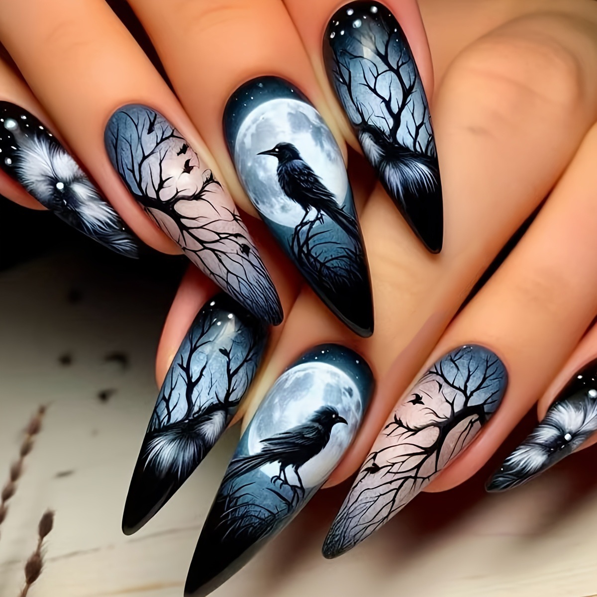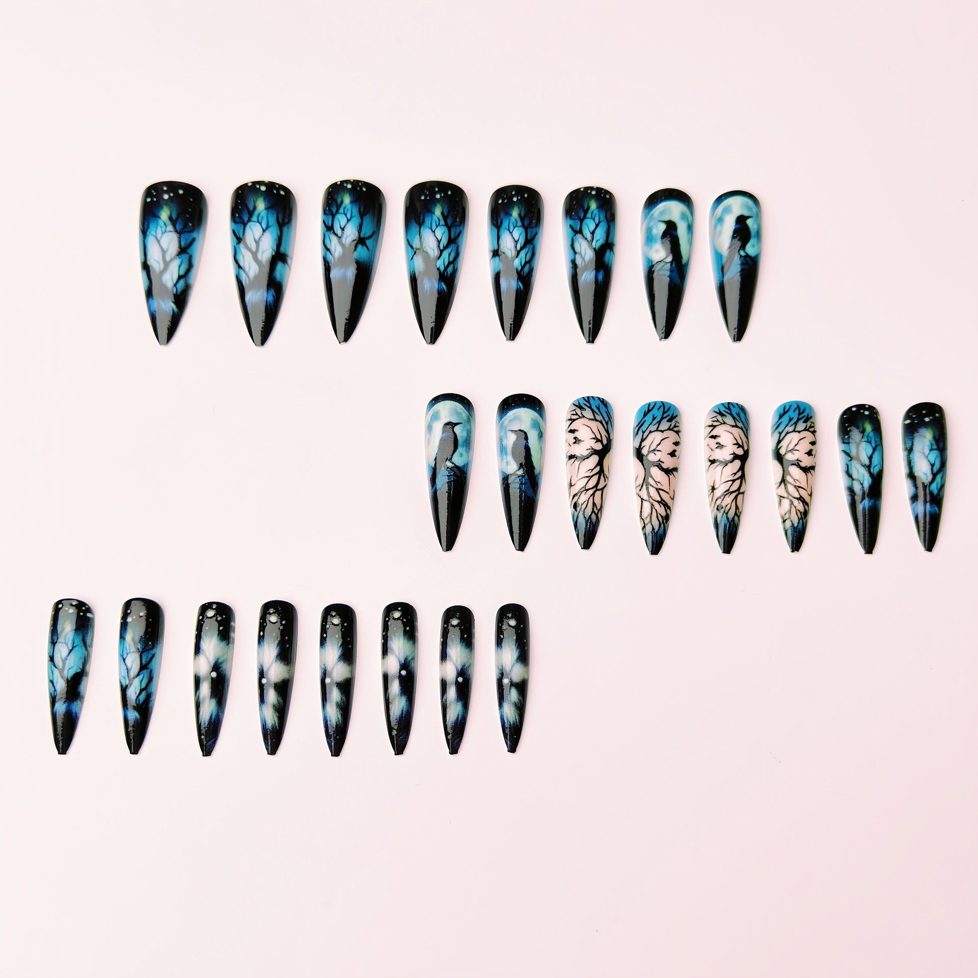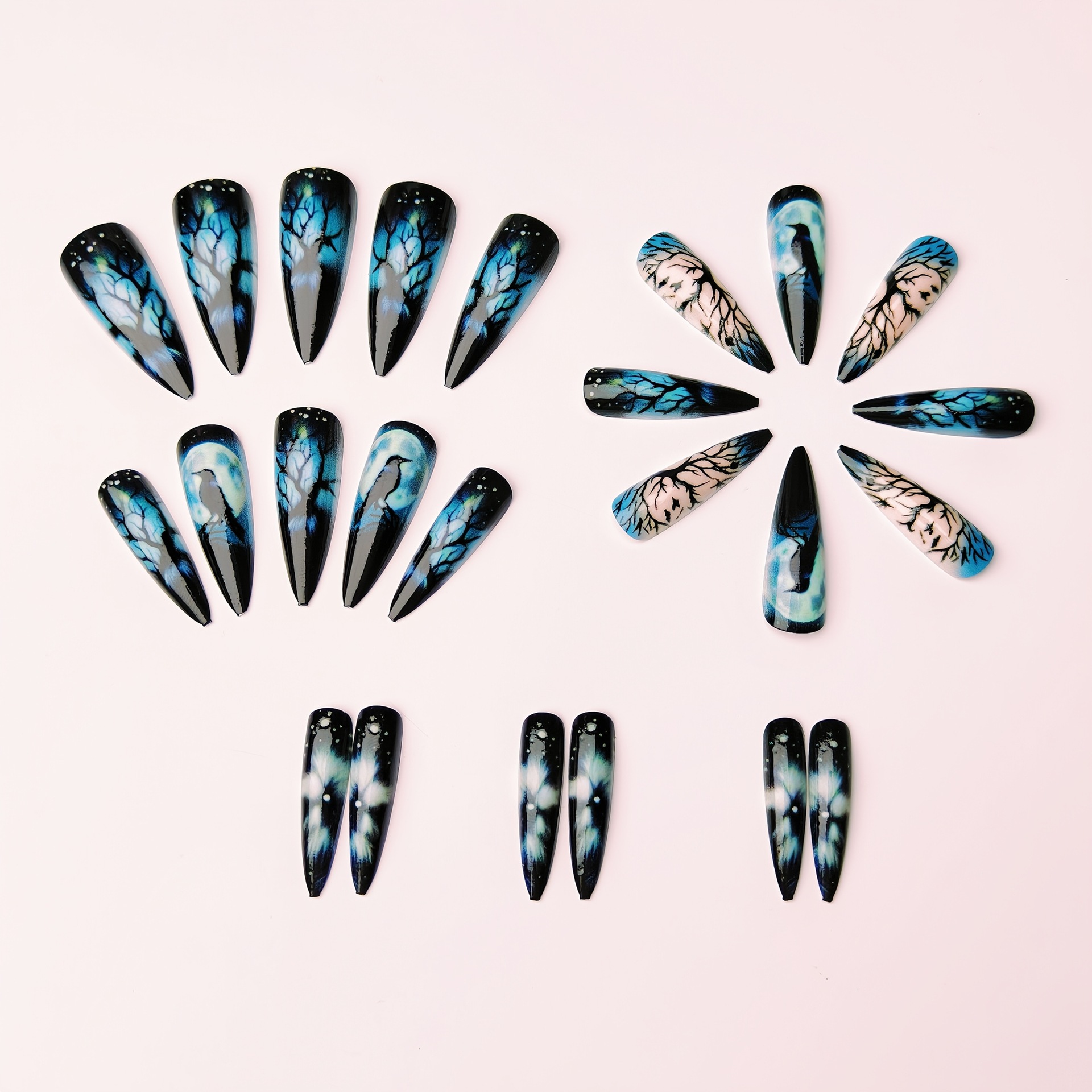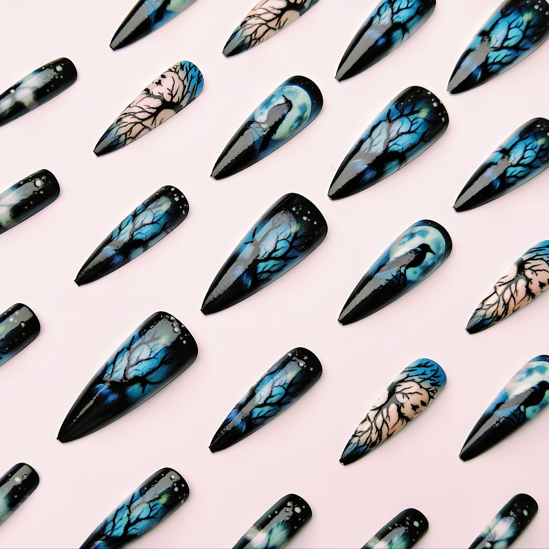 أظافر قابلة للارتداءبشكل سماء مرصعة بالنجوم