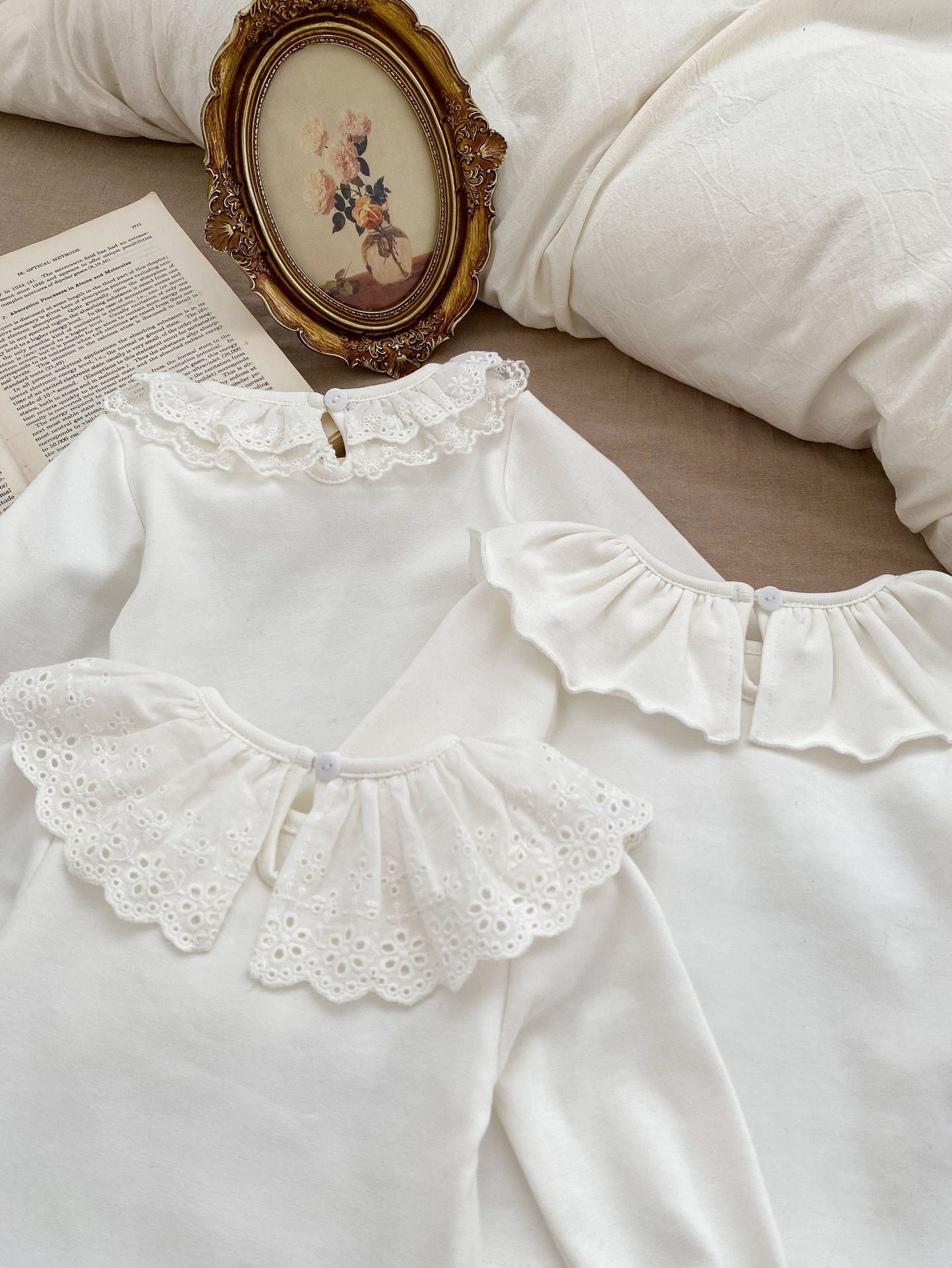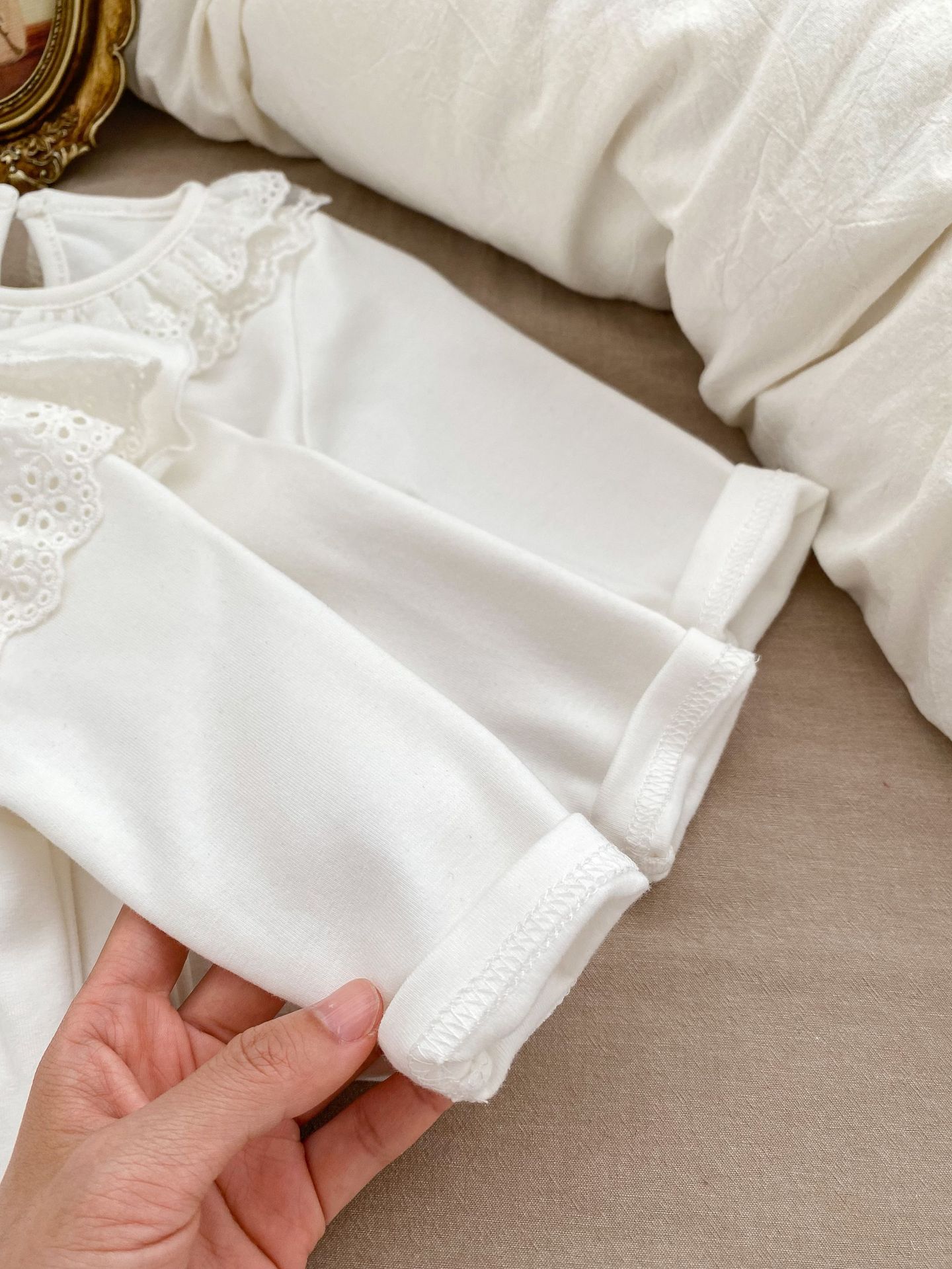فنيلة قطنية مكممة بياقة من التل الناعم للفتيات الرضع