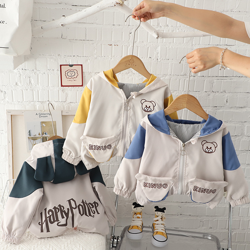جاكت كاجوال بغطاء رأس بنمط كارتون للأطفال الصغار