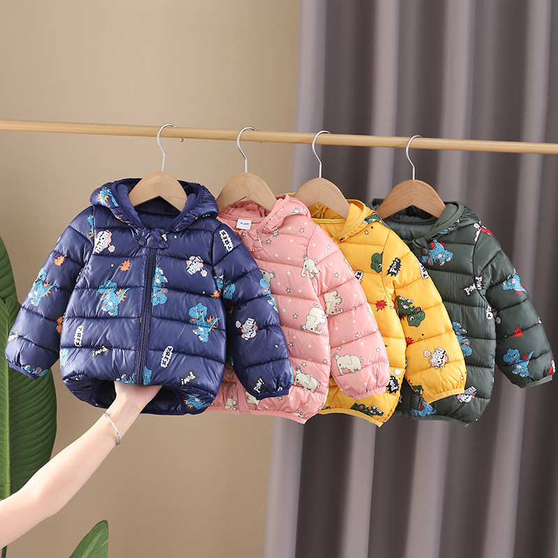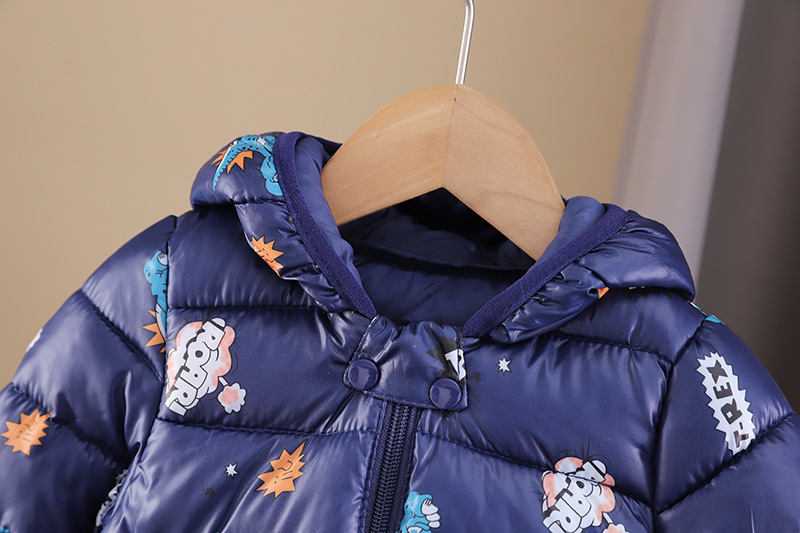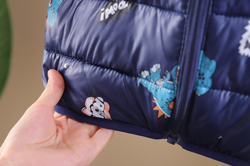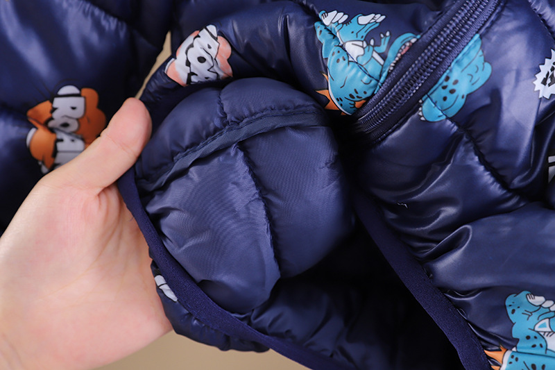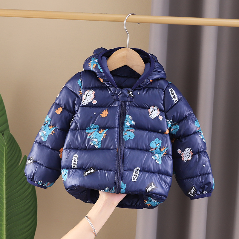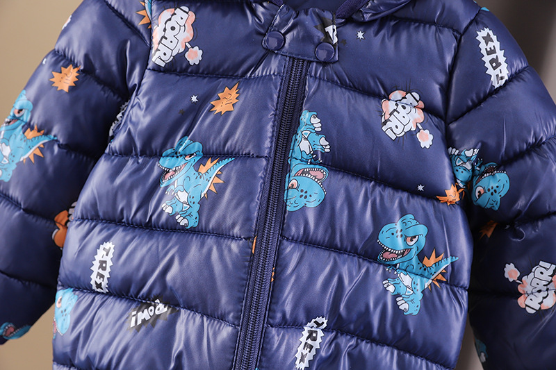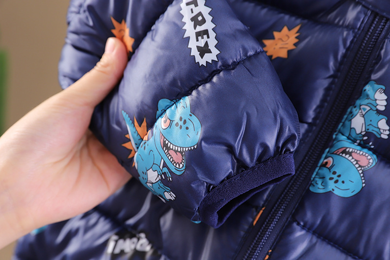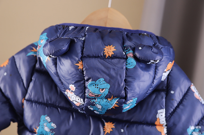 جاكيت كاجوال سميك بغطاء رأس ومبطن بالقطن بطبعة ديناصور