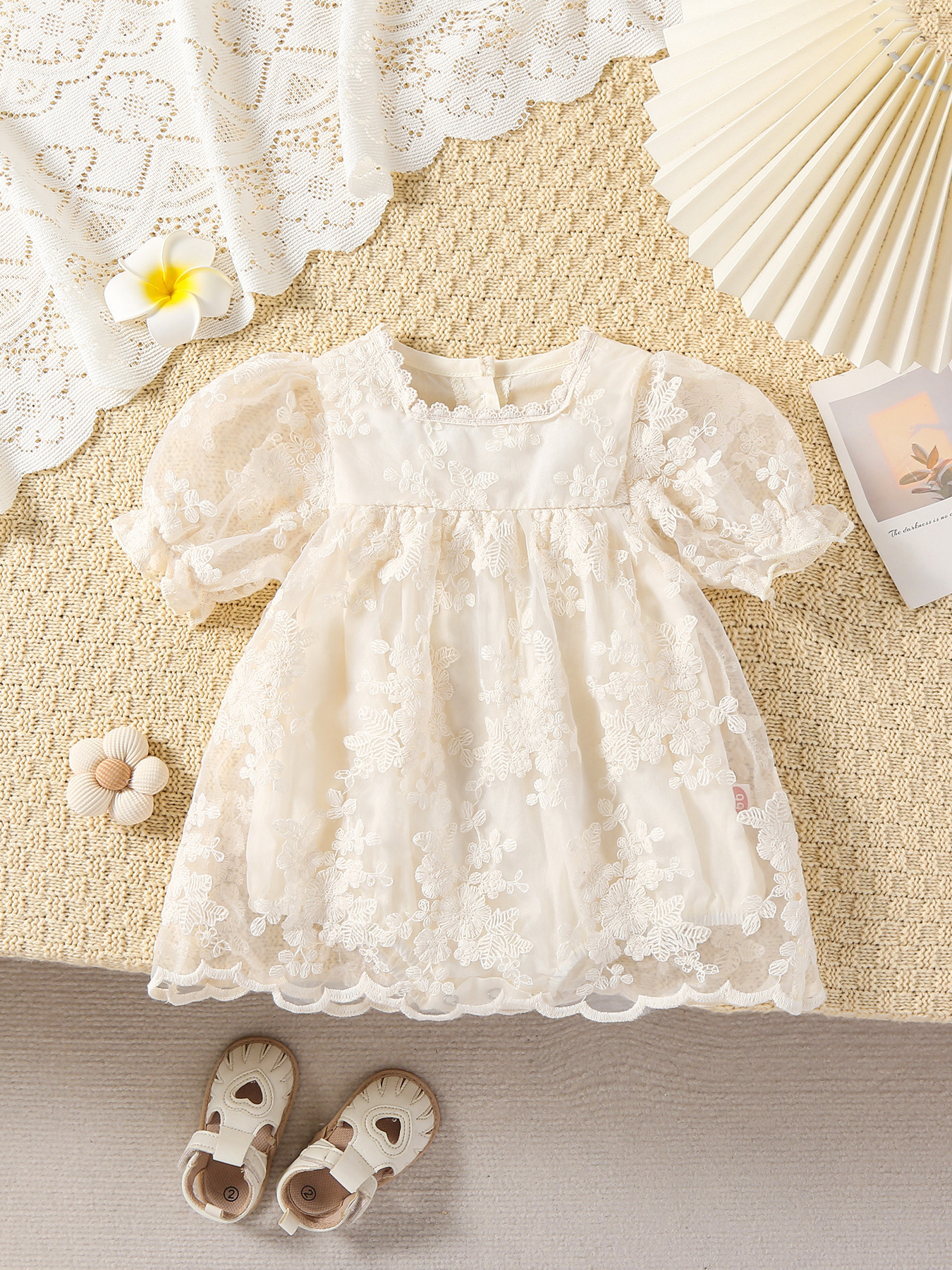 فستان قصير الأكمام بتصميم انيق وخفيف للفتيات الرضع