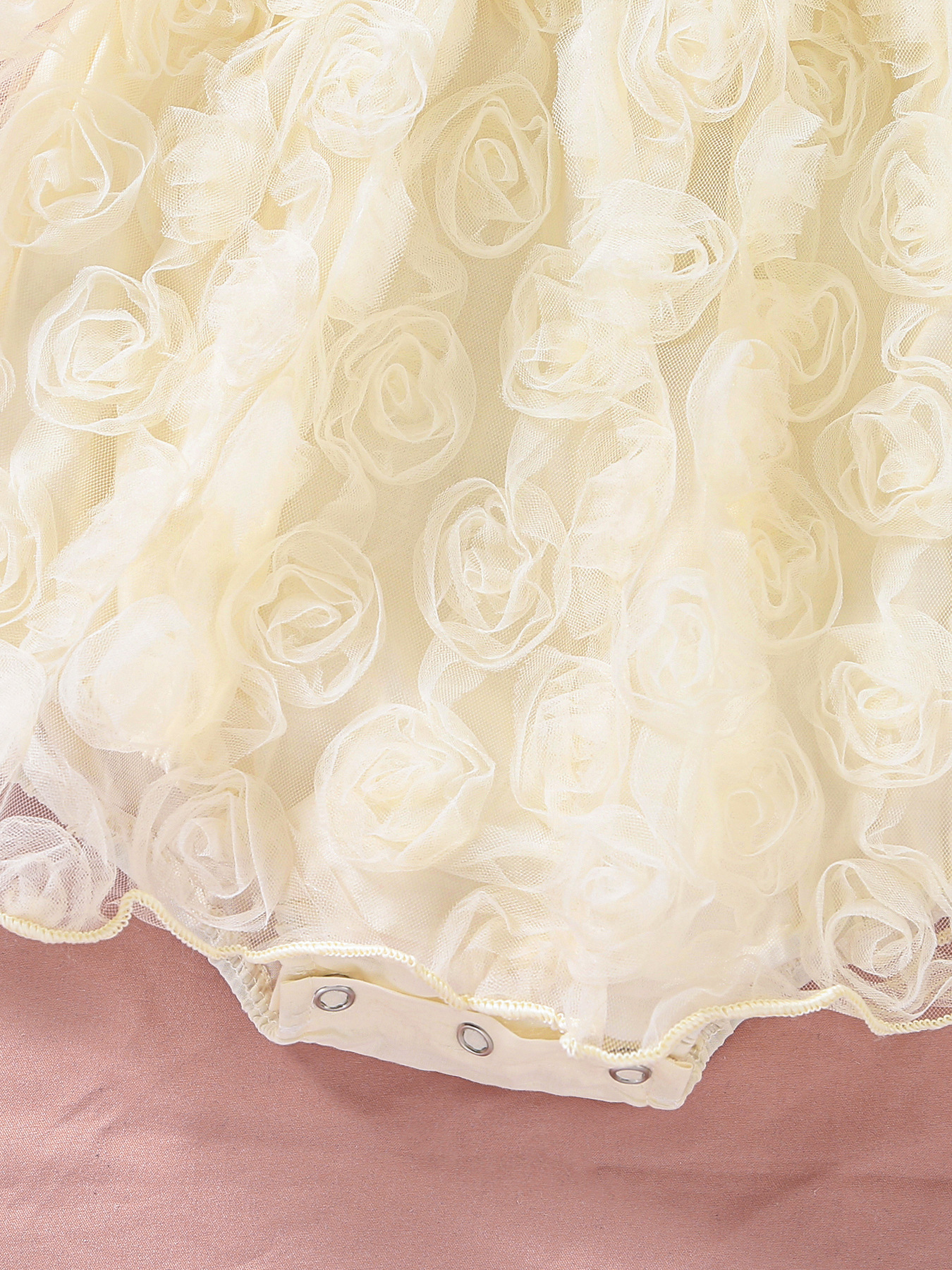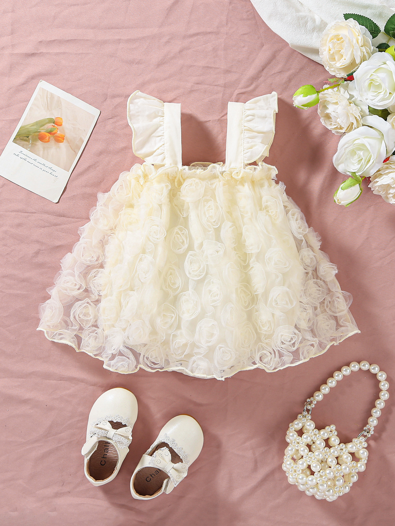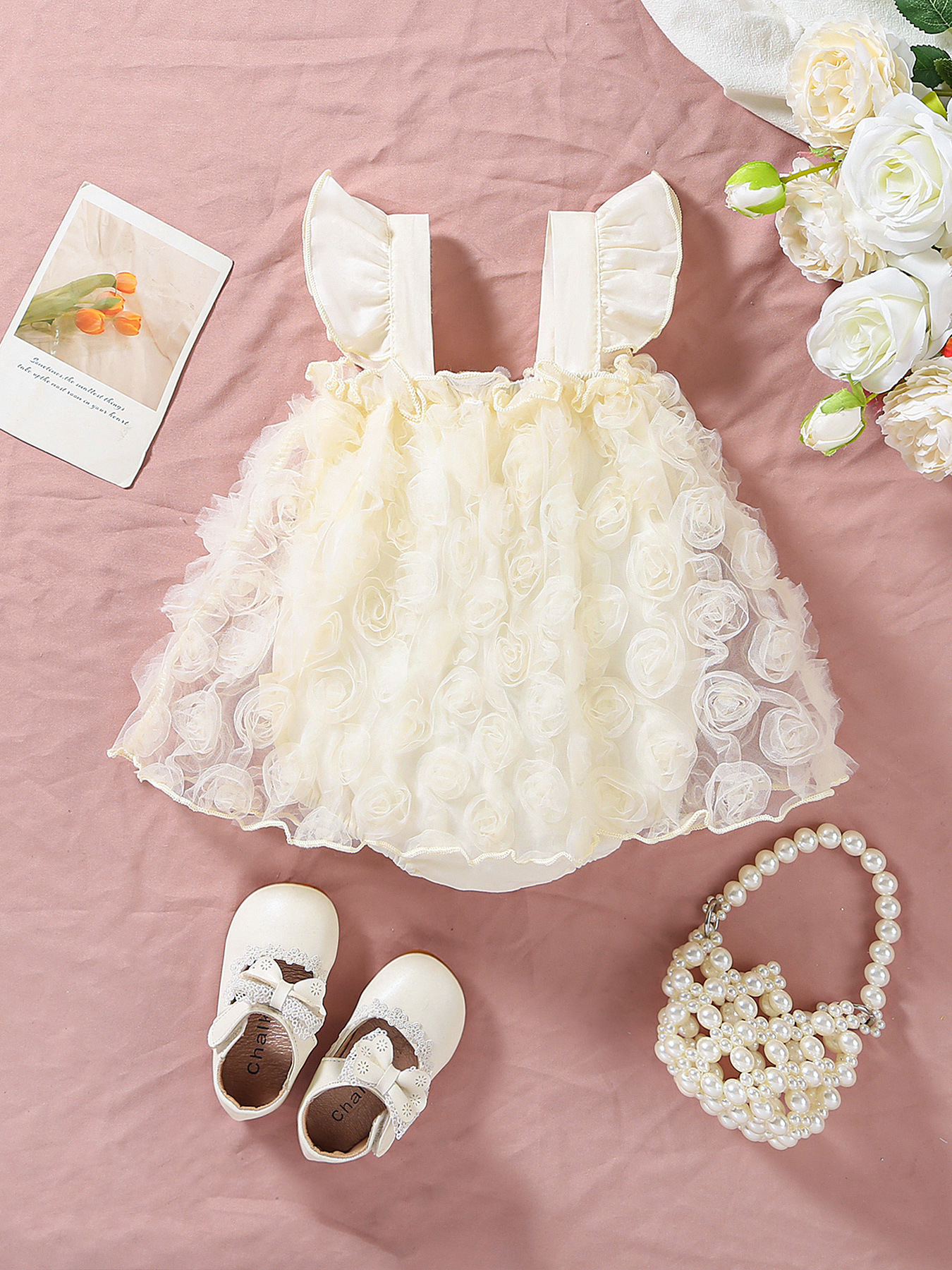 فستان منقوش بالورود مع حواف مكشكشة للمواليد