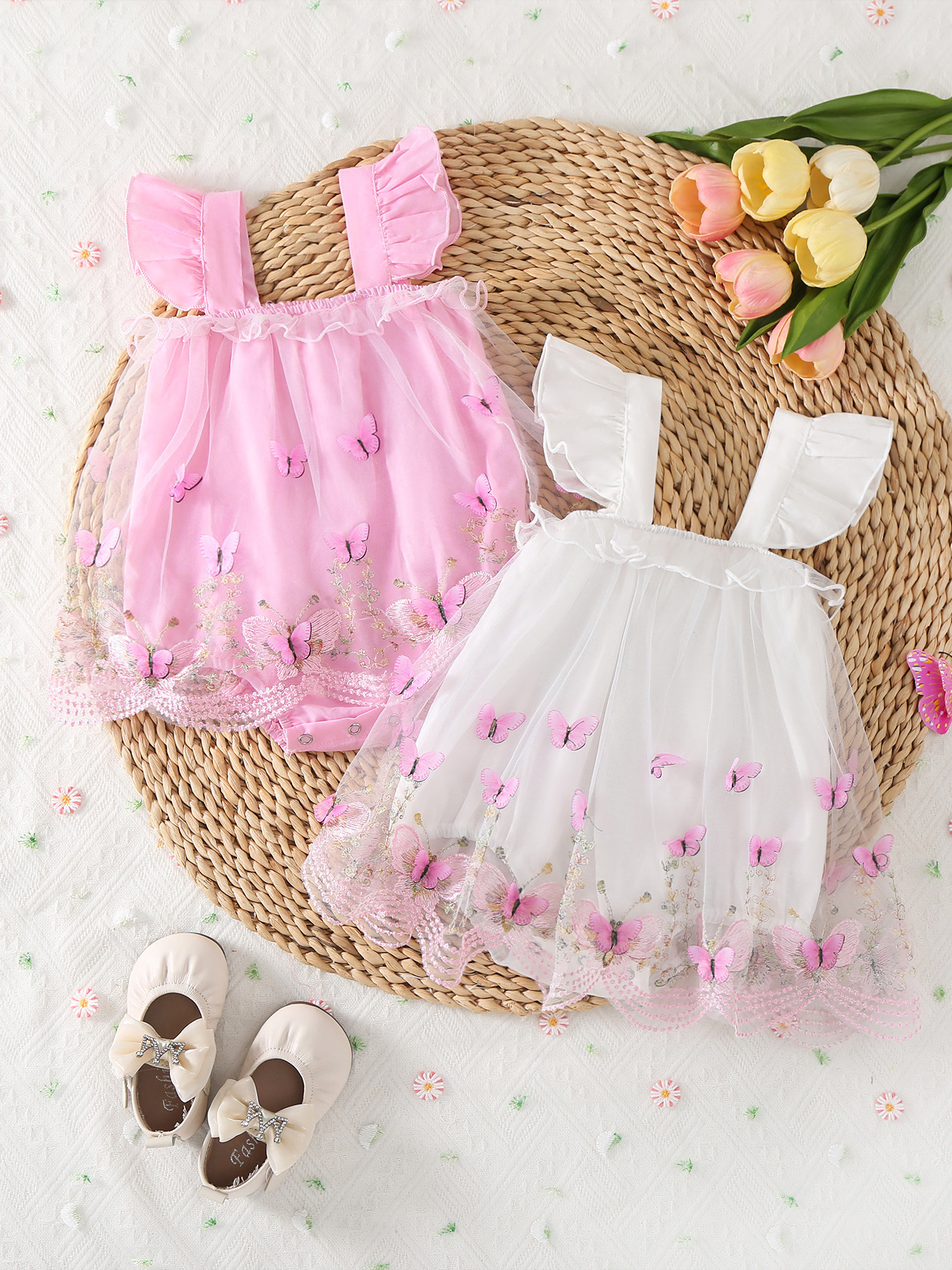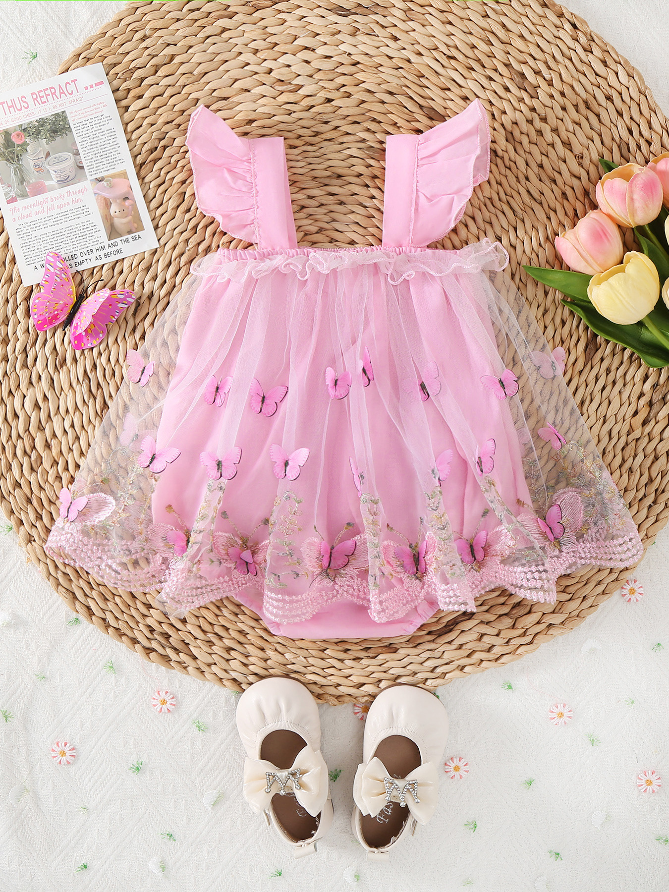 فستان برومبير صيفي مع حافة من الدانتيل وشبكة وفراشة للفتيات