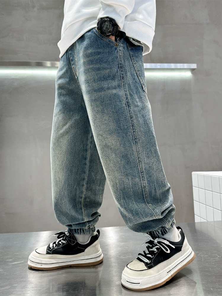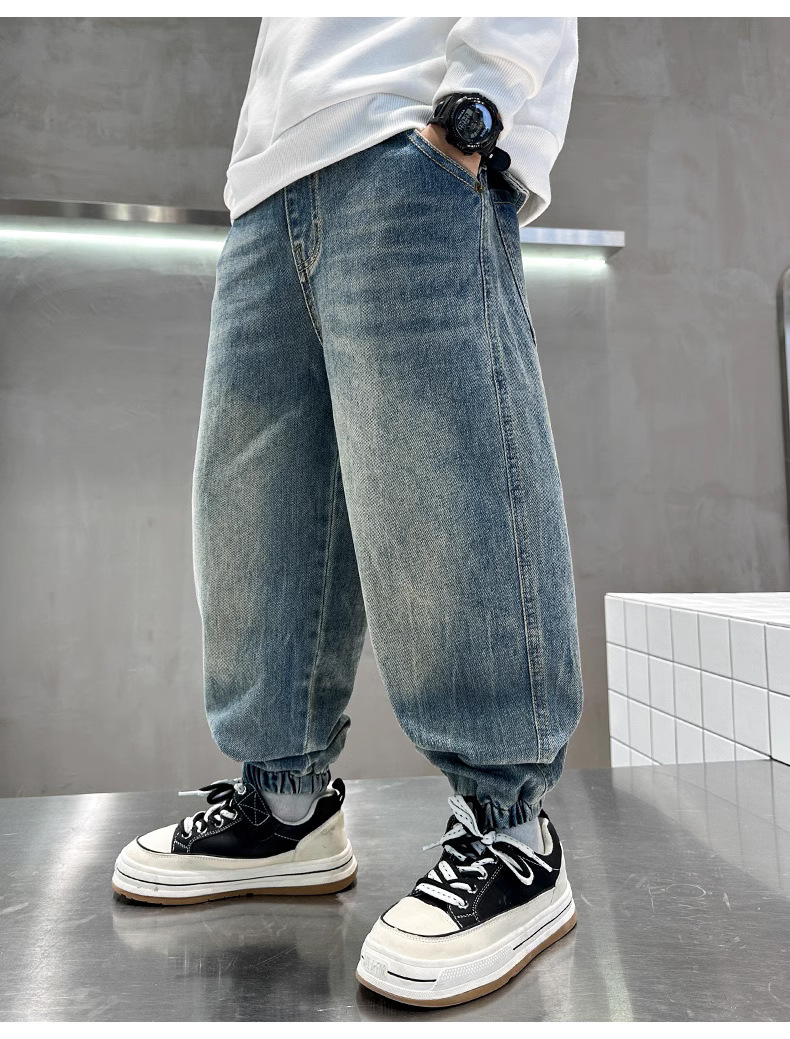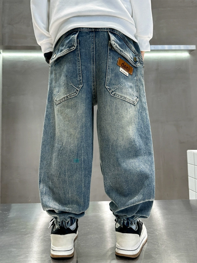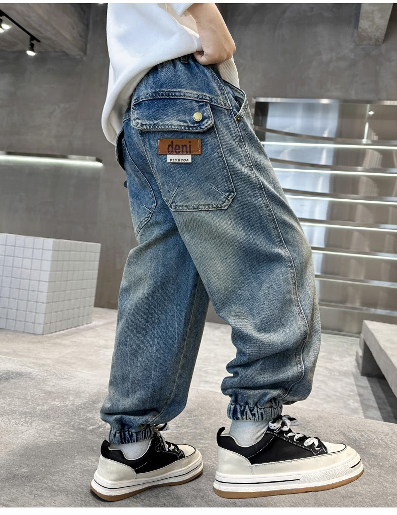 بنطال جينز مريح بقبضة سفلية وخِصر مطاطي للاولاد