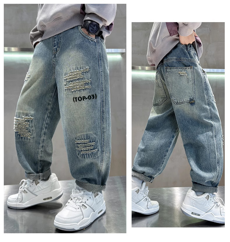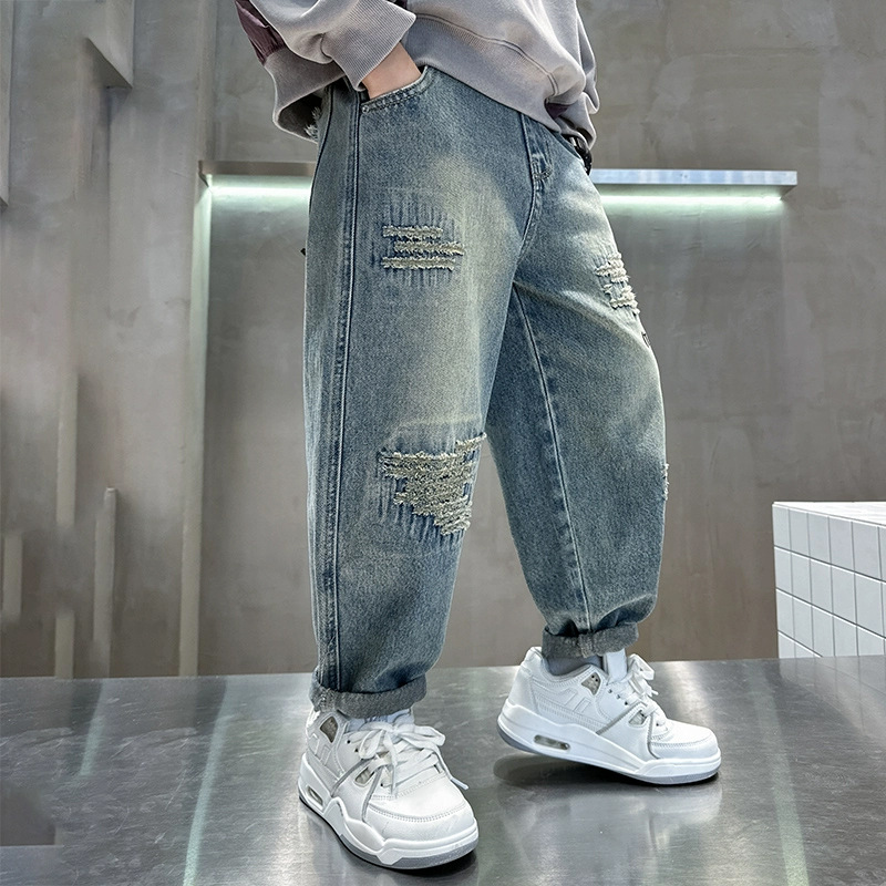 بنطلون جينز كاجوال أنيق بقصة مستقيمة من قماش قطني للأولاد