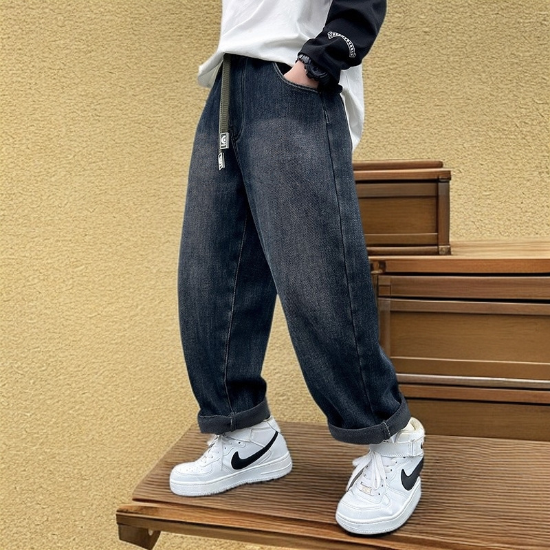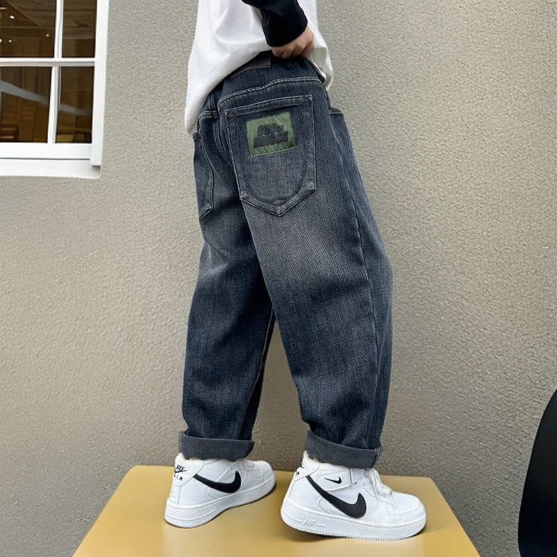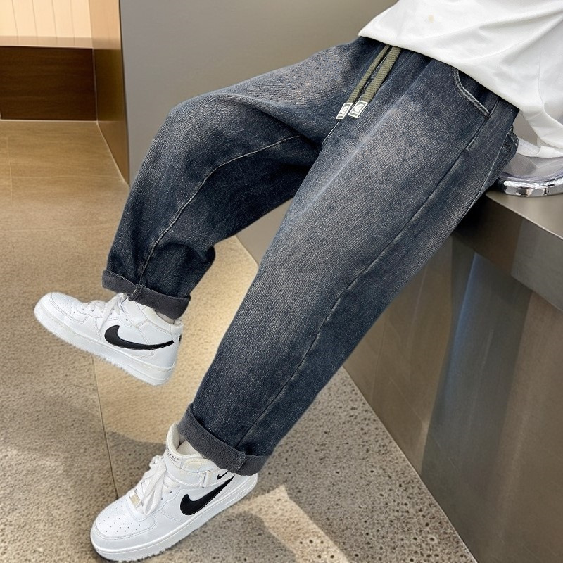 بنطلون جينز كاجوال بخصر مطاطي قابل للتعديل للاولاد