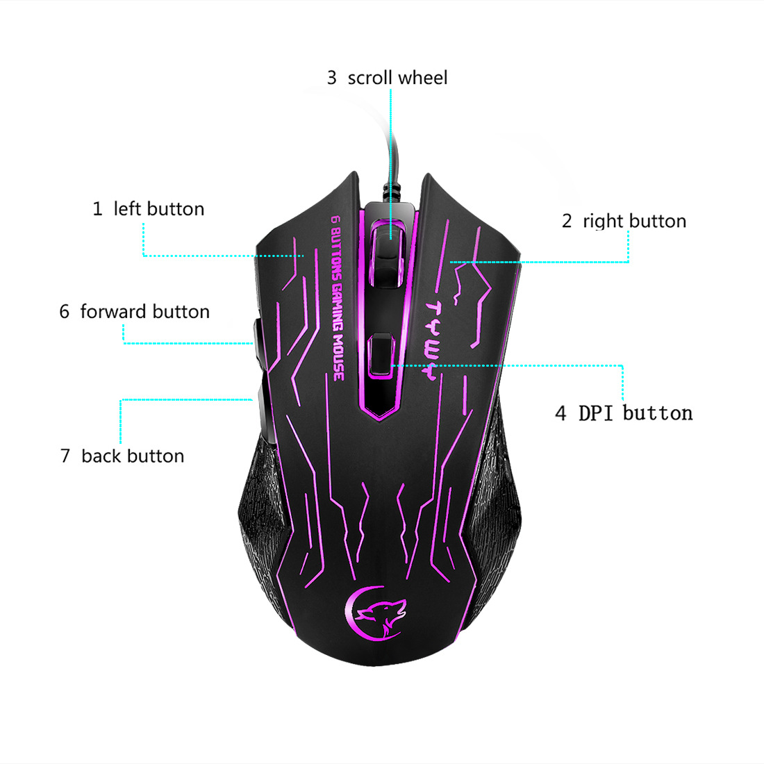 | وصف | ماوس سلكي بطول الكابل 1.5 متر - أزرار ماوس للألعاب والترفيه والعمل المكتبي - تطبق لأجهزة الكمبيوتر المكتبية - أضواء تنفس ملونة و يمكن إيقاف ضوء النابض الملون |