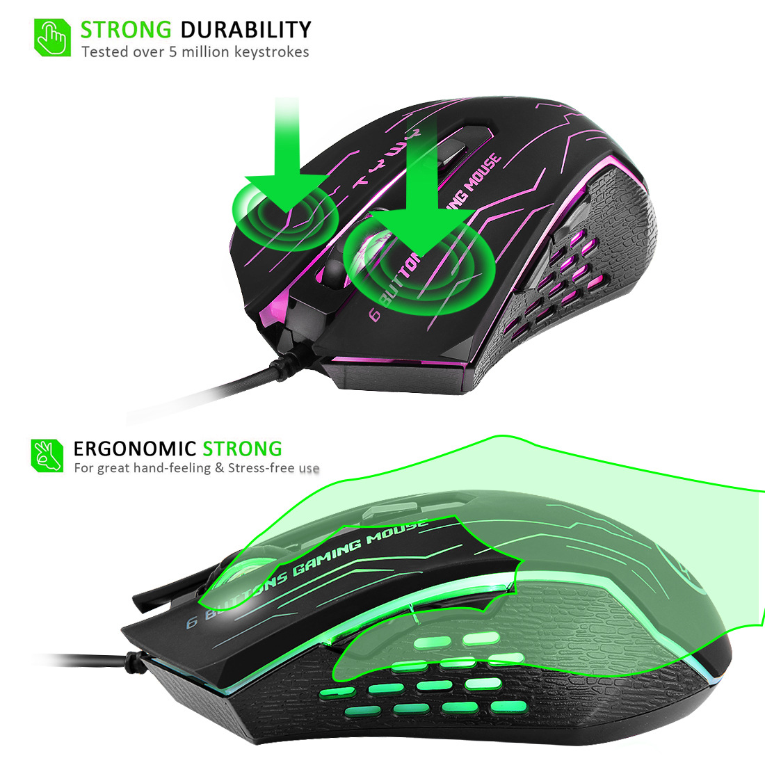 ماوس الألعاب السلكي ، ماوس بإضاءة خلفية ملونة للألعاب والاستخدام المكتبي