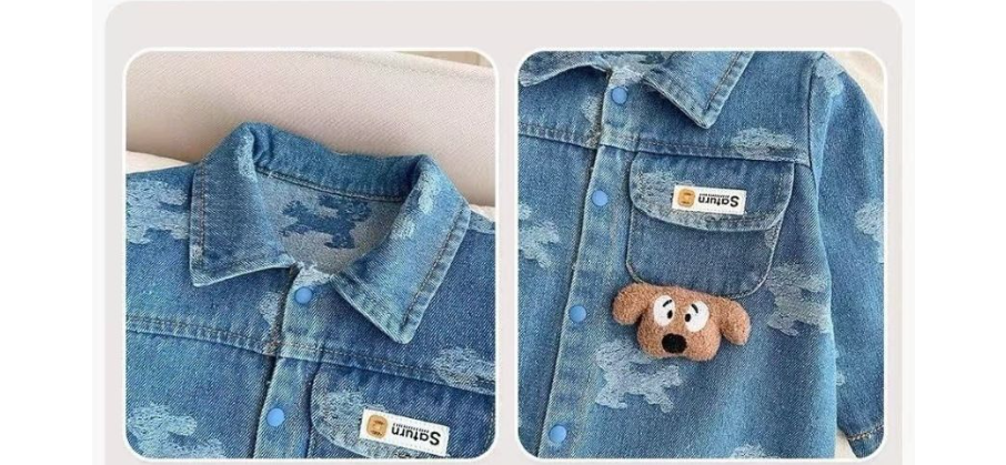 رومبير جينز بكم قصير وياقة مقلوبة للأولاد