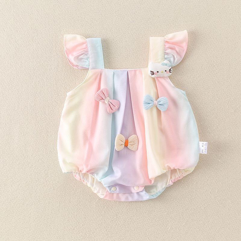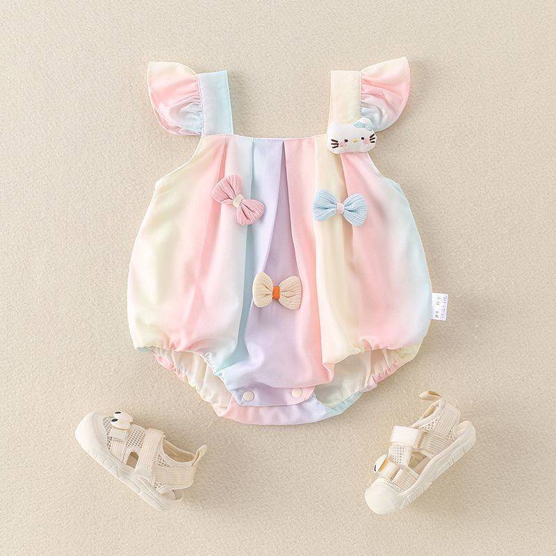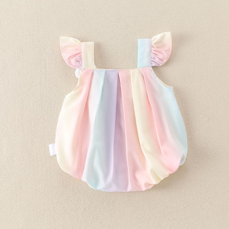 رومبير مثلث الشكل واكمام مكشكشة من القطن للفتيات الرضع
