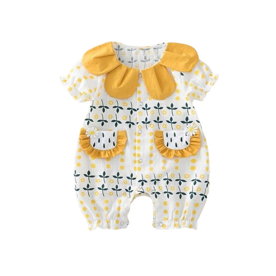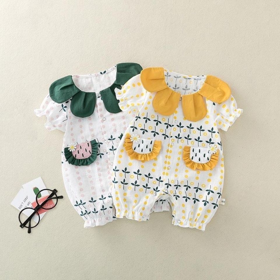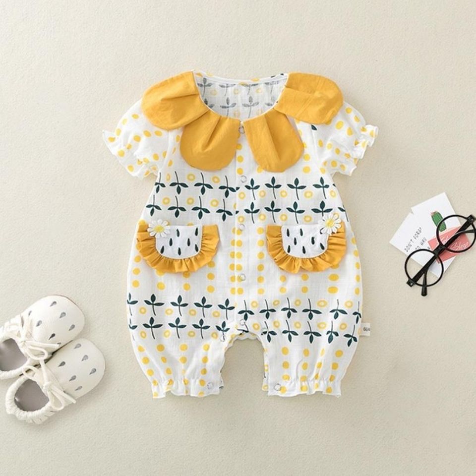 بدلة صيفي رقيق بأكمام قصيرة قابلة للتنفس من القطن للفتيات الرضع