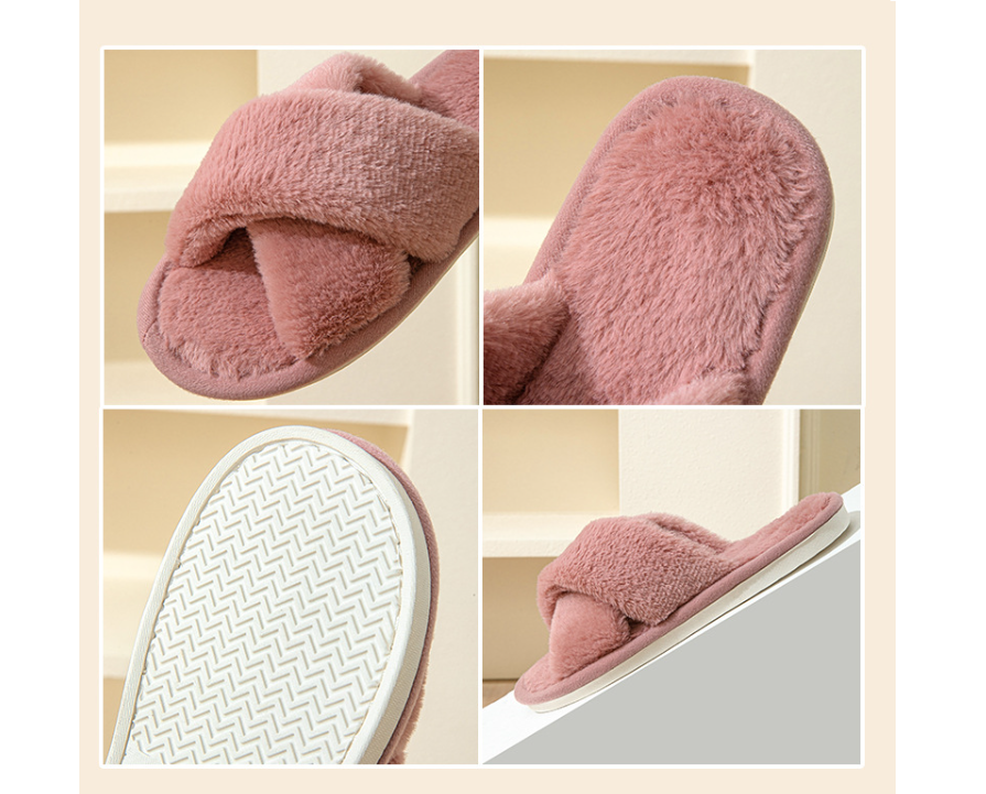 نعال شتوي مفتوحة الأصابع من فرو الأرنب الصناعي بتصميم متقاطع