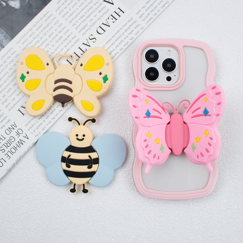 حامل جوال بقاعدة ثابتة ومشابك مرنة لقبضة آمنة بنمط فراشة / قطعتين