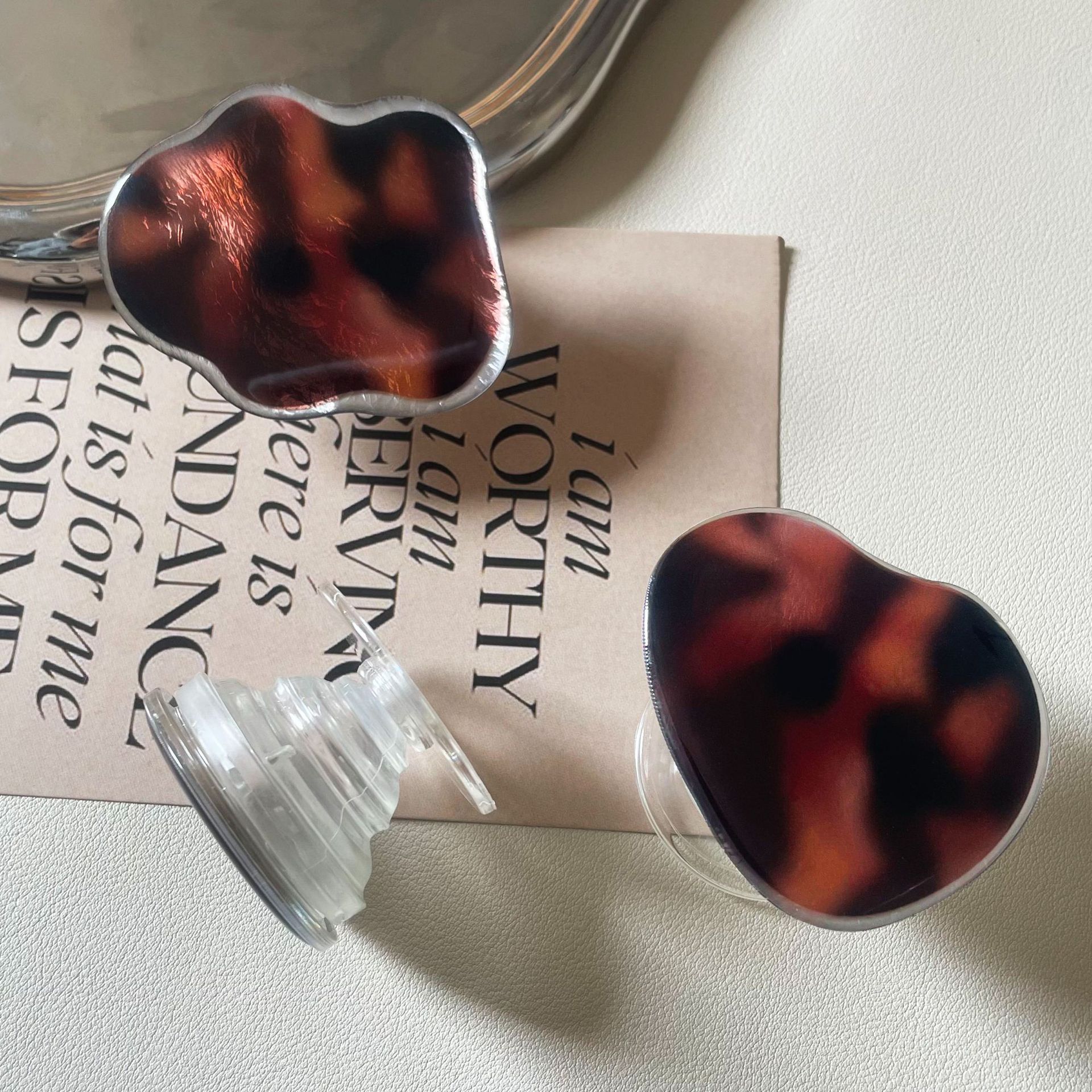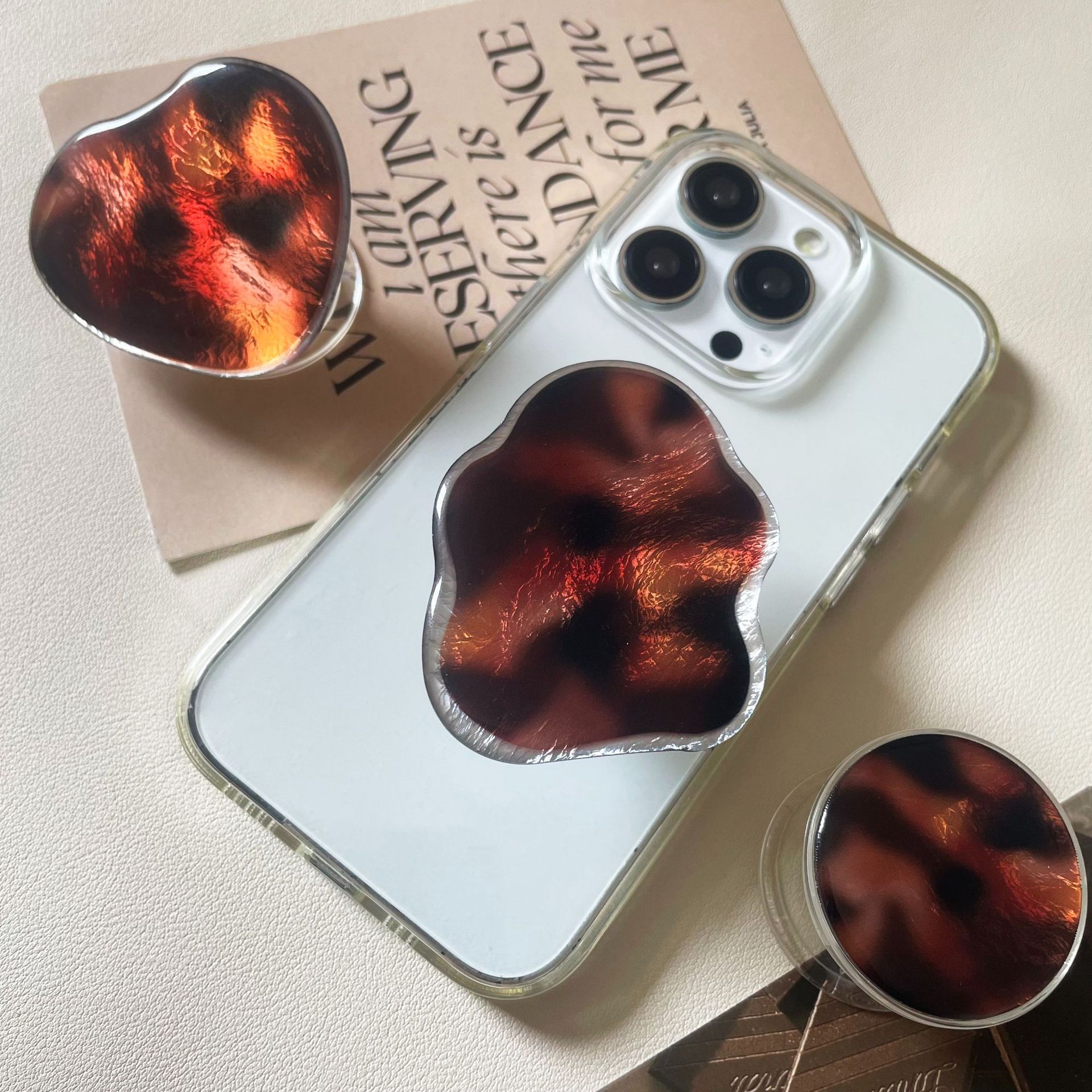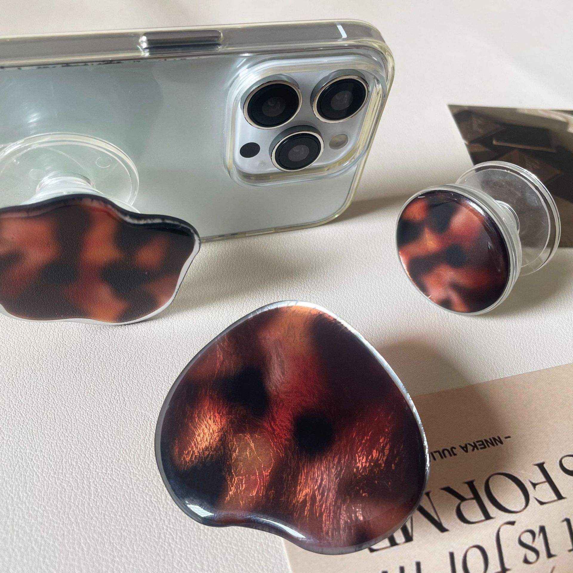 حامل هاتف هوائي شفاف باللون البني المتدرج بنمط نمري/ قطعتين