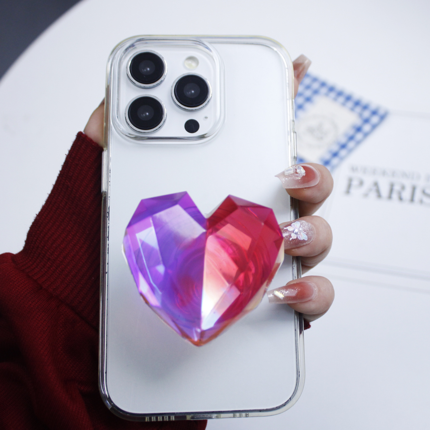 حامل هاتف هوائي شفاف بشكل قلب ملون ومنعش / قطعتين