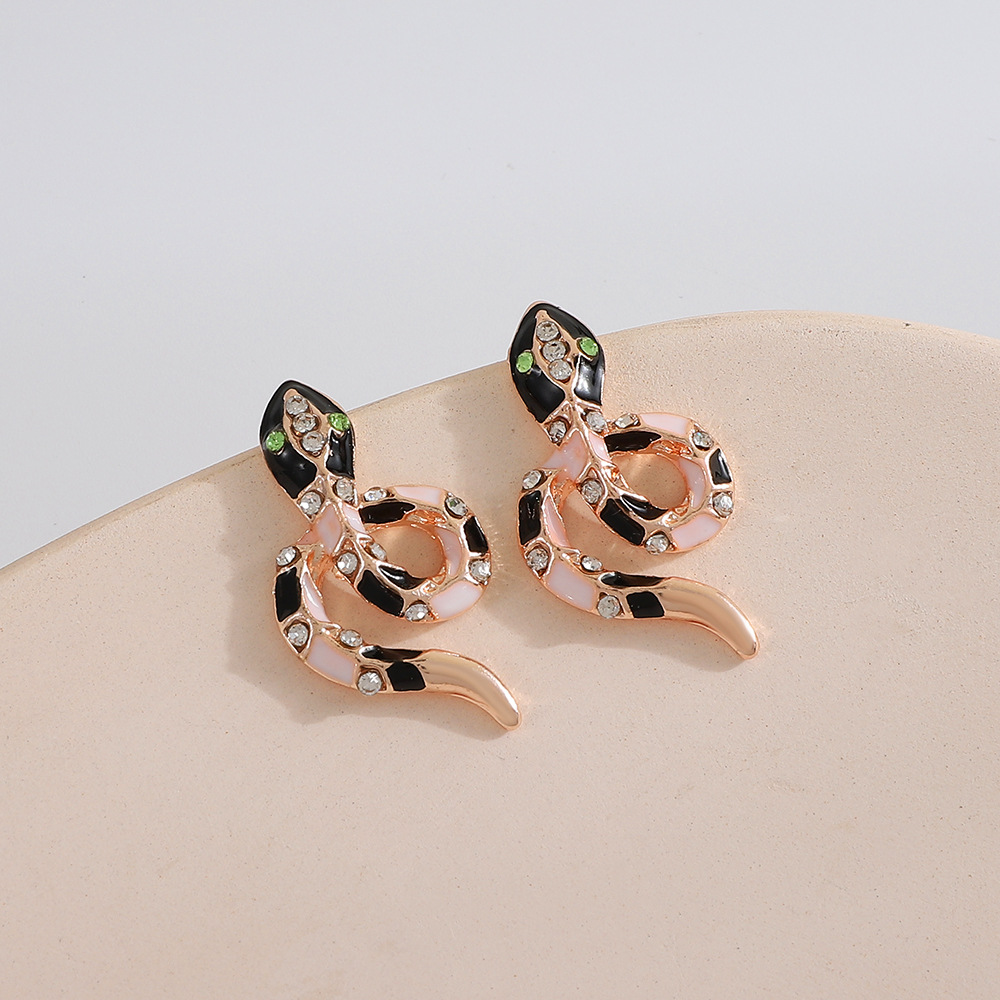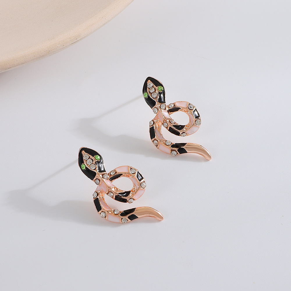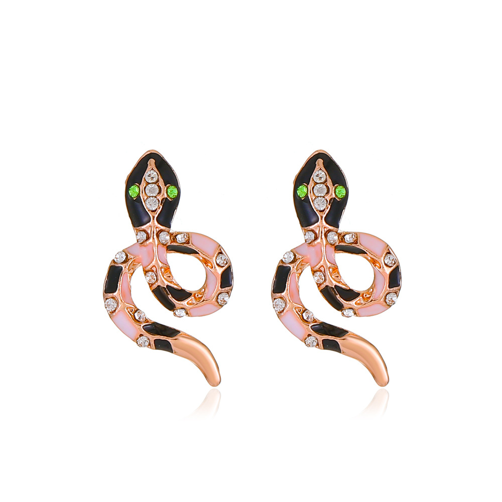 أقراط صغيرة ملونة على شكل ثعبان مرصعة بأحجار زركون