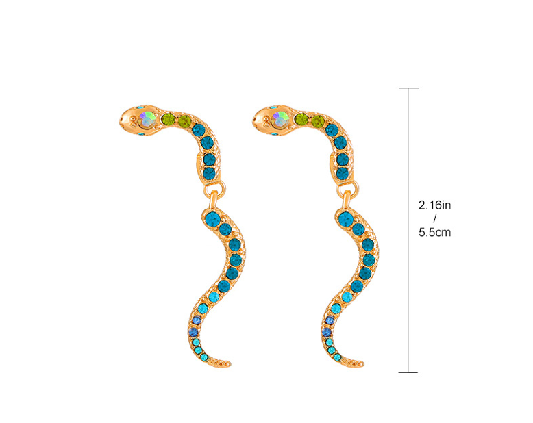 أقراط عصرية مرصعة بالألماس الملون على شكل ثعبان