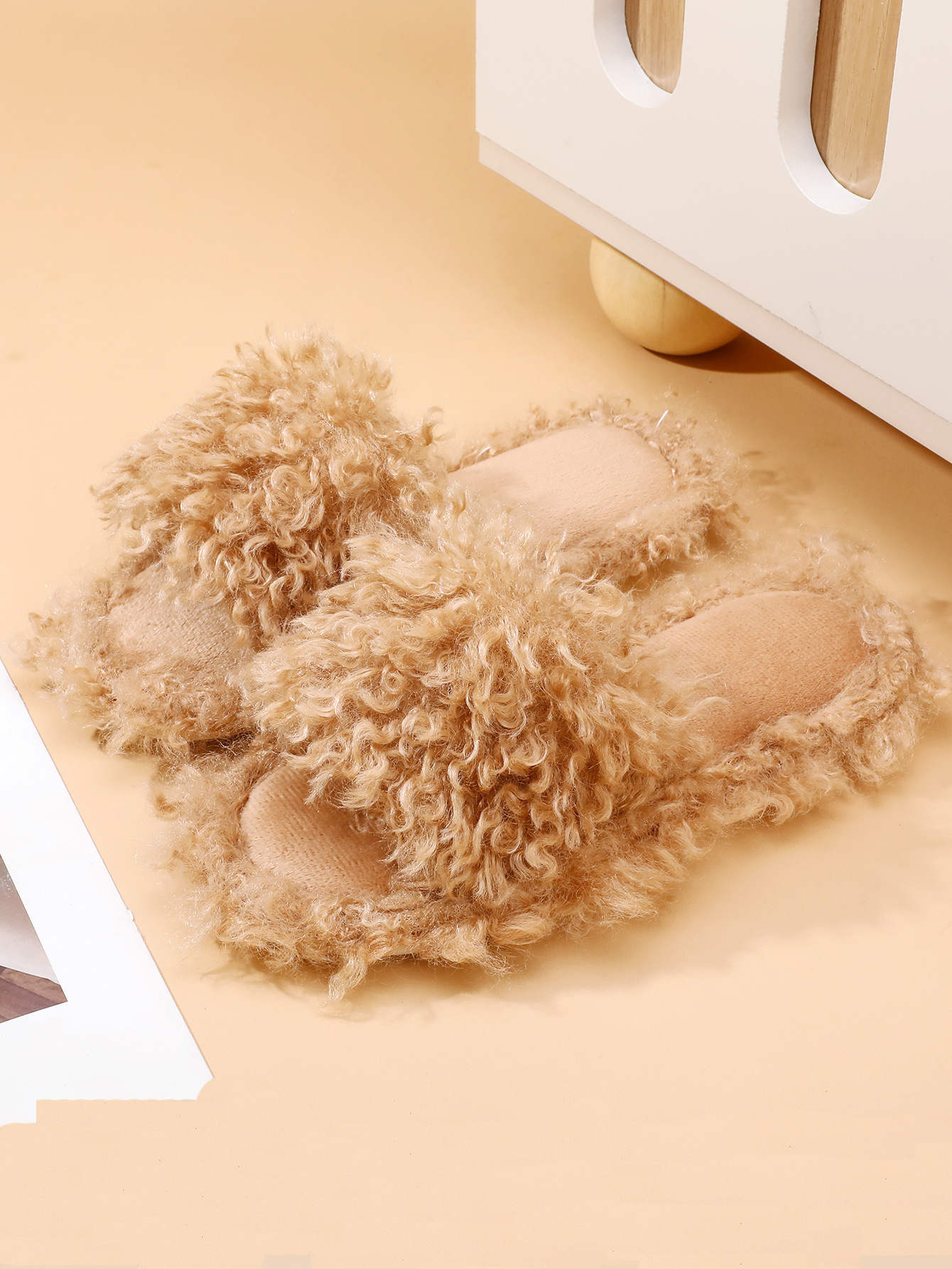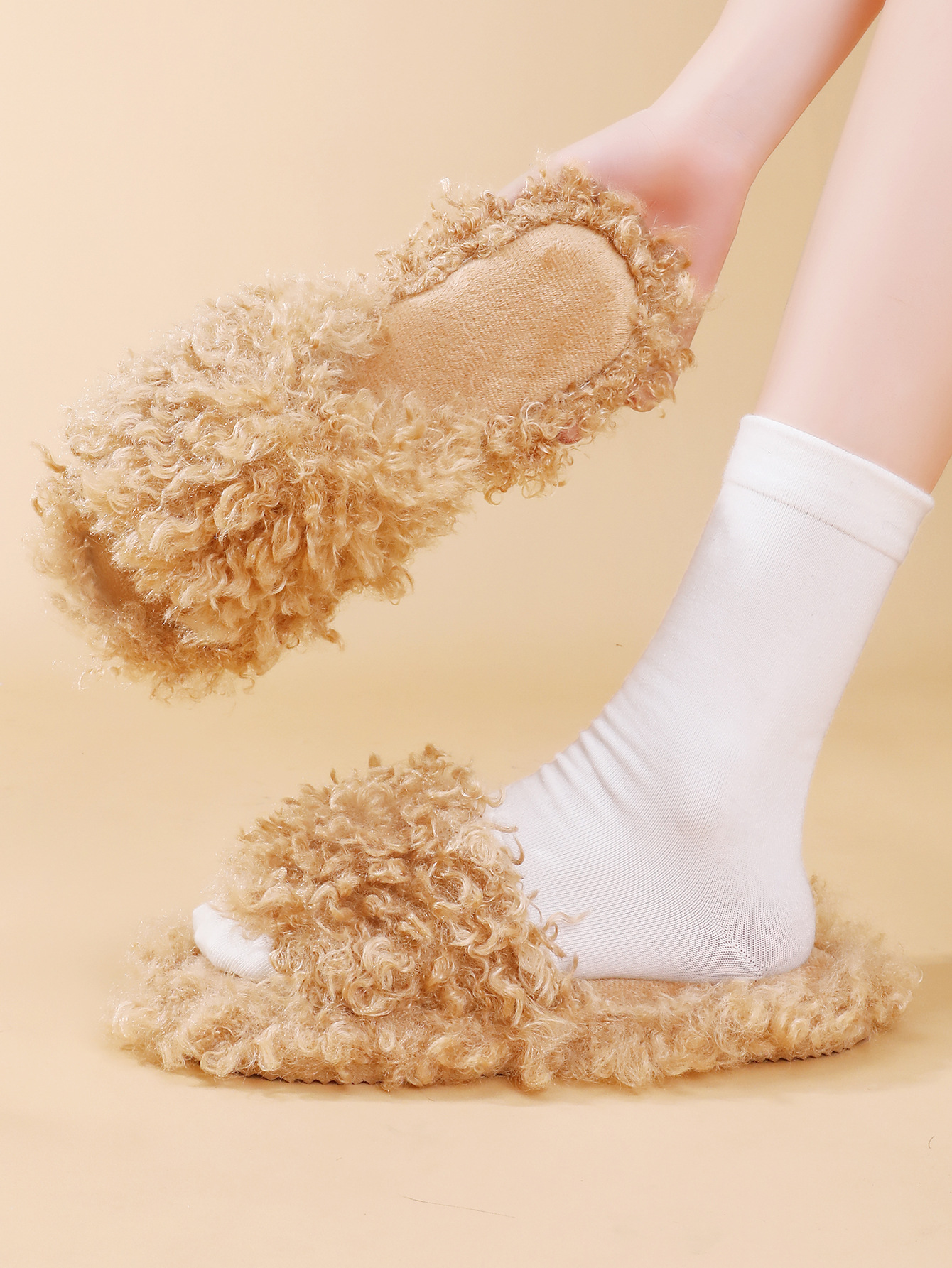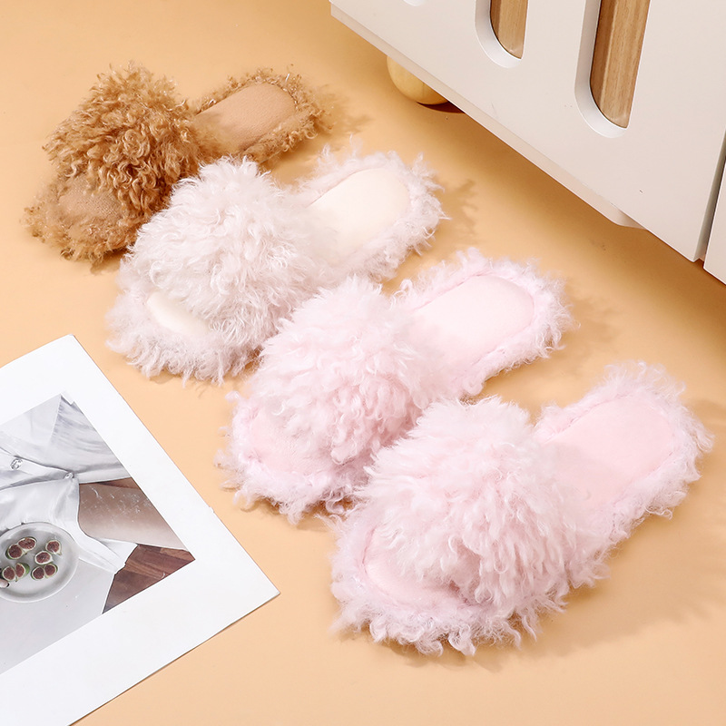شبشب شتوي مفتوح الأصابع فرو بقاعدة مانعة للانزلاق للاستخدام المنزلي