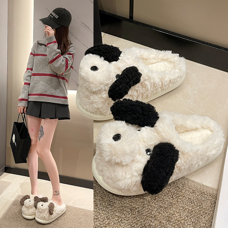 شبشب شتوي مغلق مقدمة بالكامل مبطّن فرو كثيف بنعل مطاطي مانع للإنزلاق