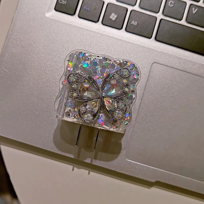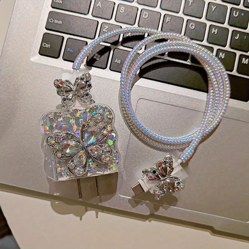 شاحن مزخرف بفراشة مع كيبل متين ومغلف يحمي من التلف