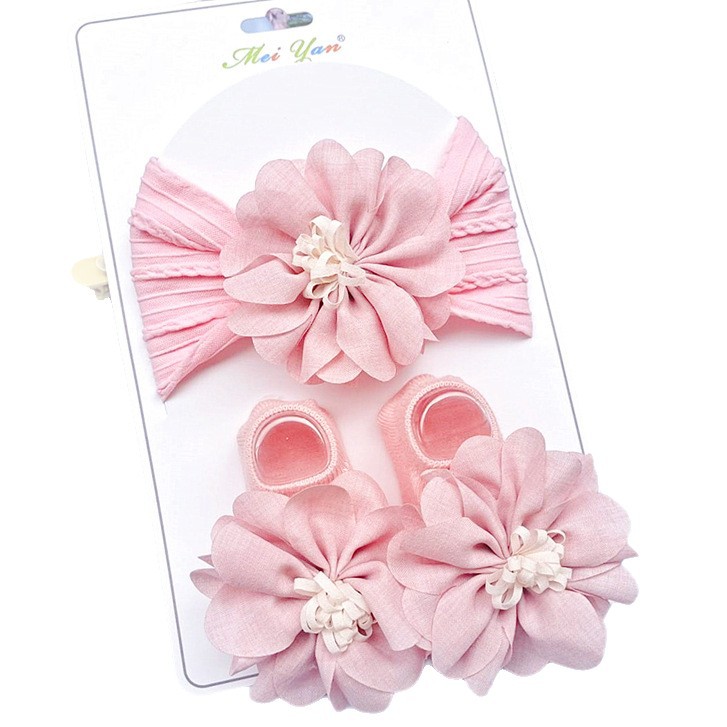 رباط شعر مع جوارب مزينة بزهرة كبيرة للفتيات المواليد