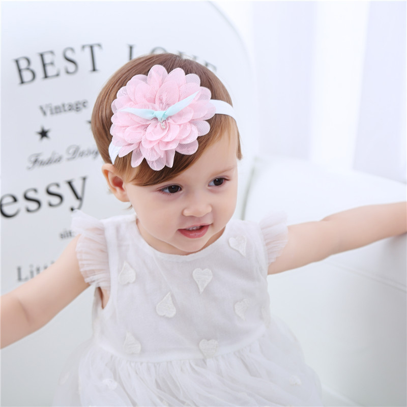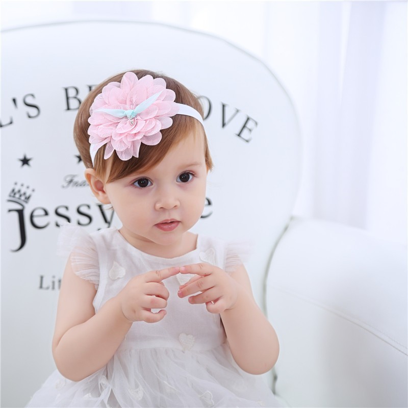 ربطة شعر دانتيل طبقات بشكل زهرة للمولودات بستايل رانيق
