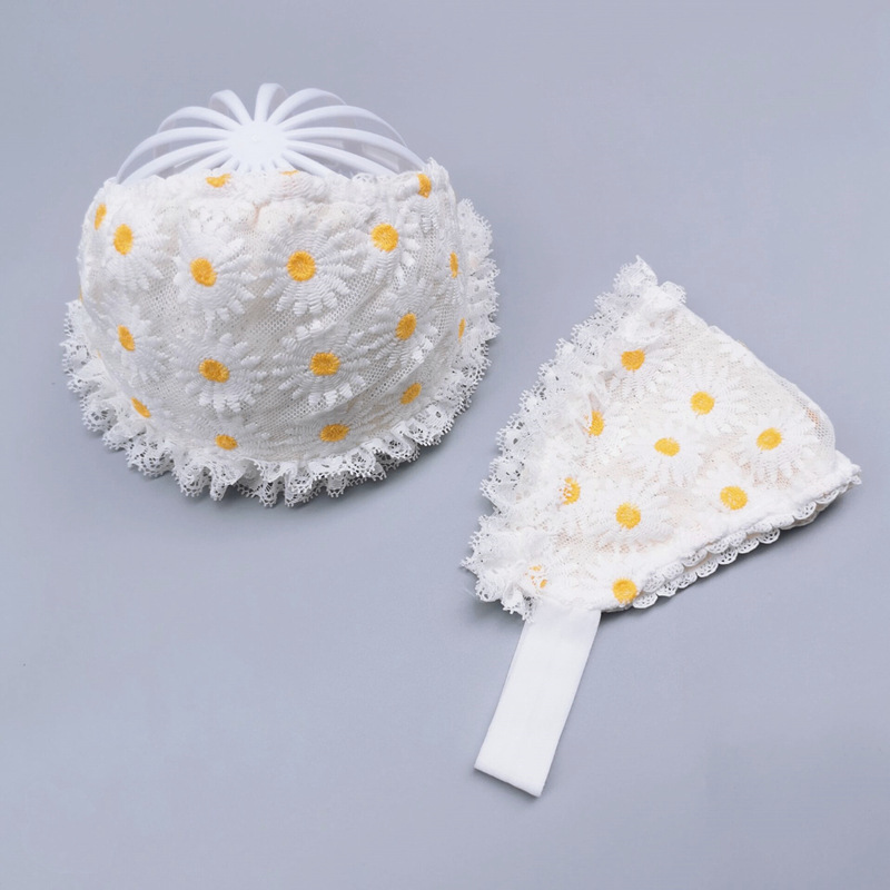قبعة راس منقوشة بالزهور ومزينة بالدانتيل مولودات
