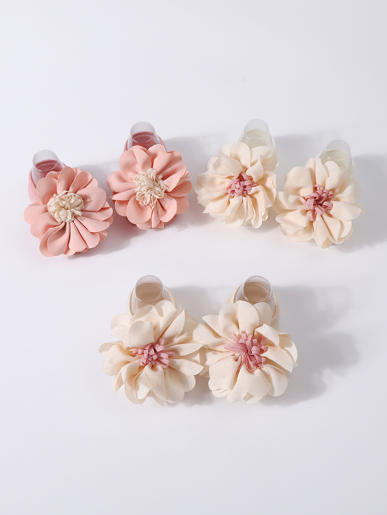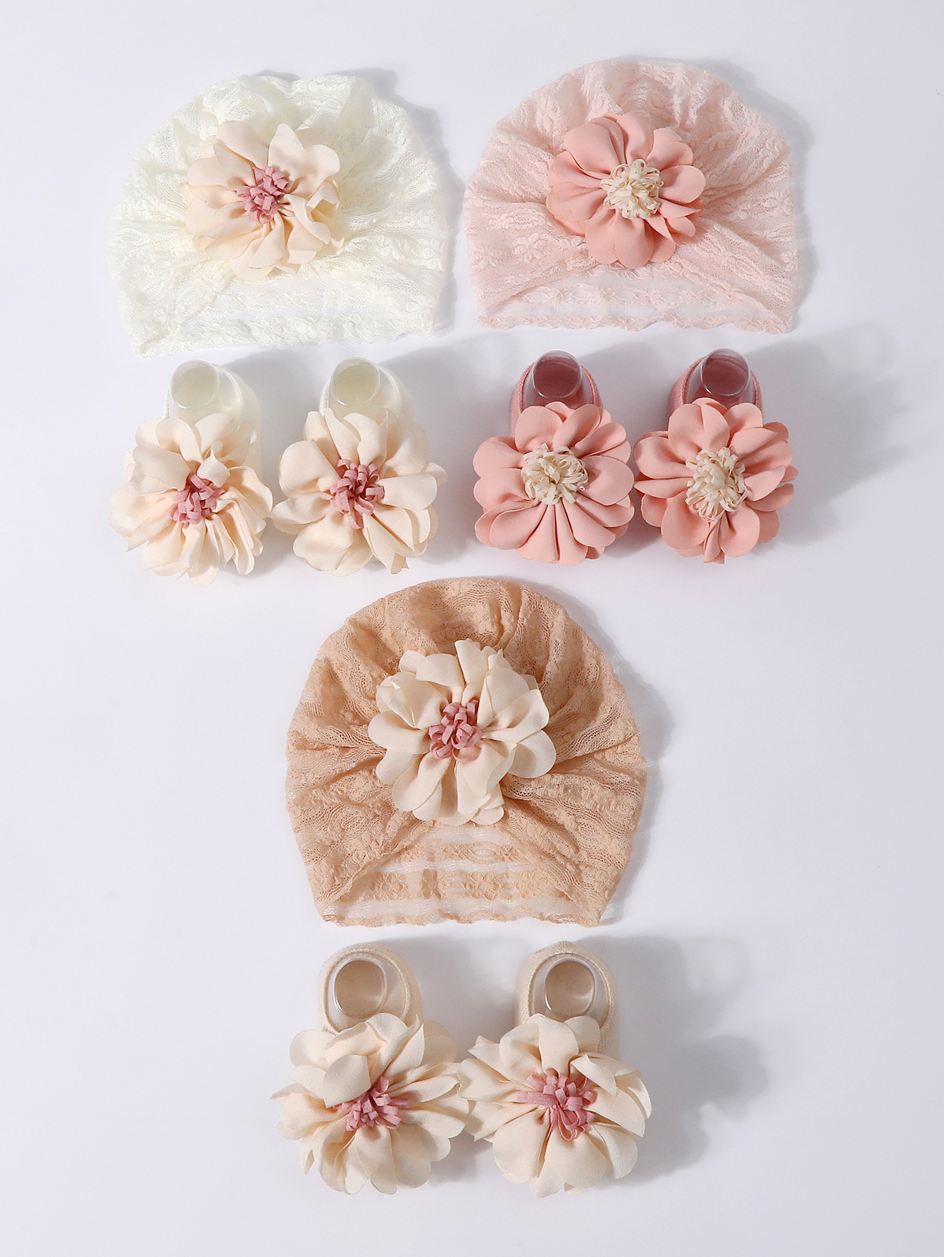 طقم قبعة وجوارب من الدانتيل المزهر لحديثي الولادة