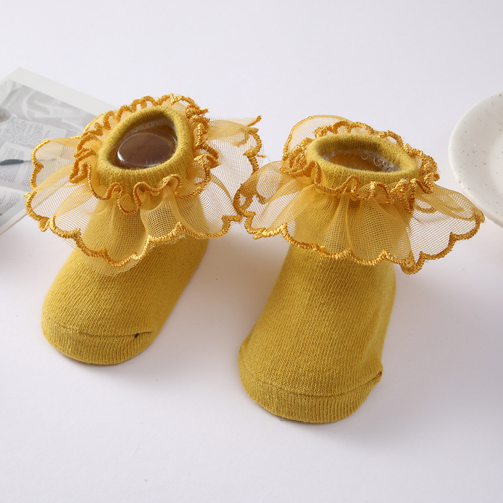 جوارب سادة اللون بحواف من الشاش للفتيات الرضع / 3 قطع
