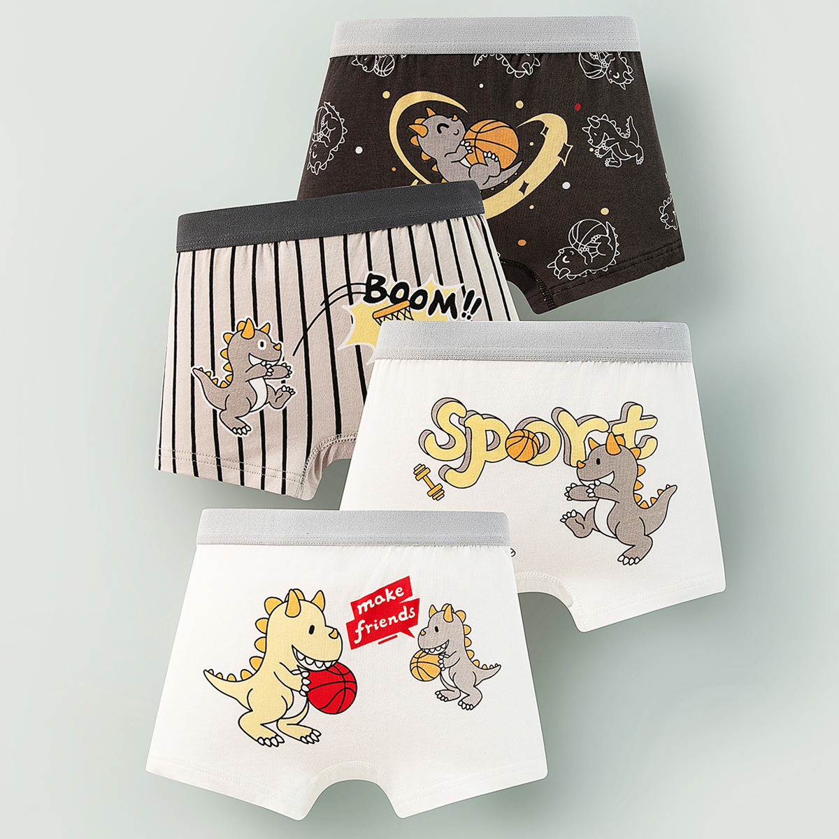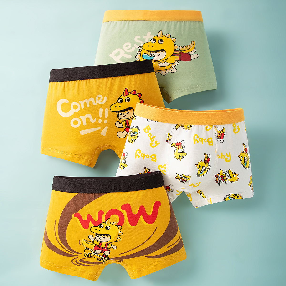 سروال داخلي بتصميم بوكسر بملمس قطني لطيف على بشرة الطفل / 4 قطع