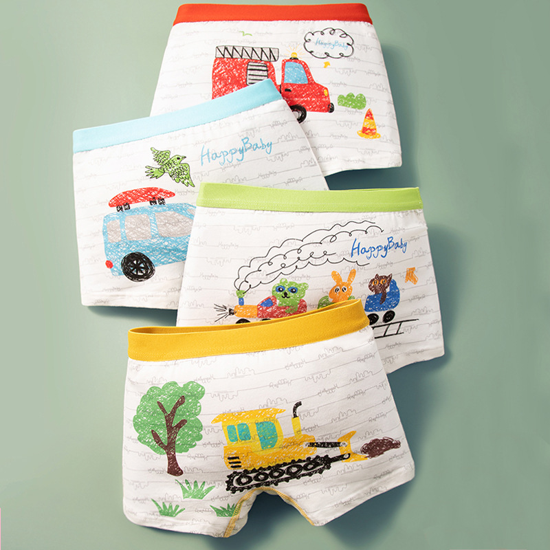 سراويل داخلية بخامة قطن وسبانديكس بنعومة مناسبة لبشرة الطفل / 4 قطع