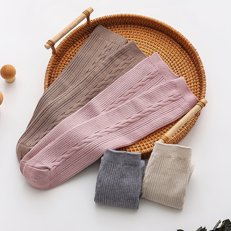 جوارب طويلة سادة اللون من القطن الخالص للفتيات الرضع / زوجين