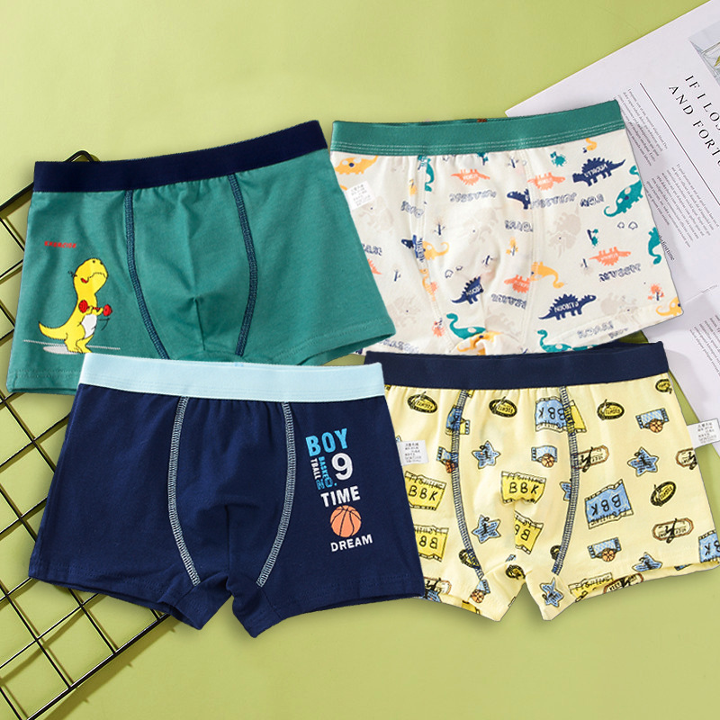 ملابس داخلية قطنية ناعمة وتصاميم كرتونية ممتعة للأطفال / 4 قطع