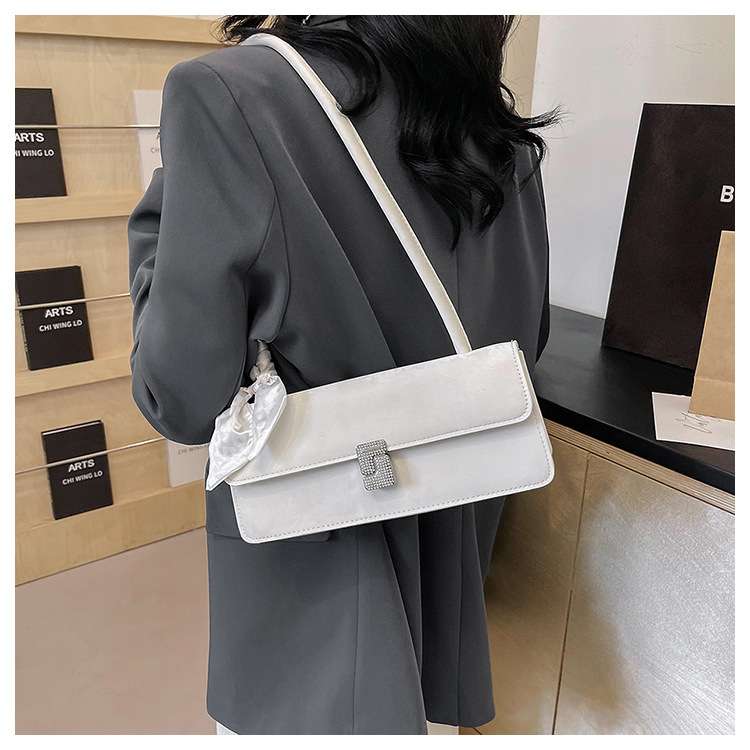 شنطة كتف مربعة سادة اللون من الجلد للسيدات