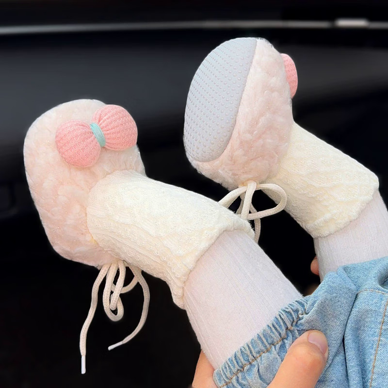 حذاء شتوي مبطن بالصوف ذو نعل ناعم من عمر يوم إلى 12 شهرًا للفتيات