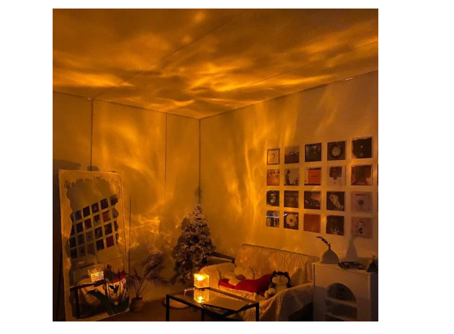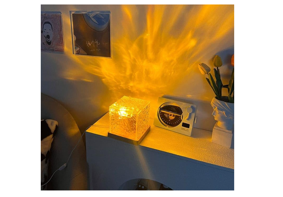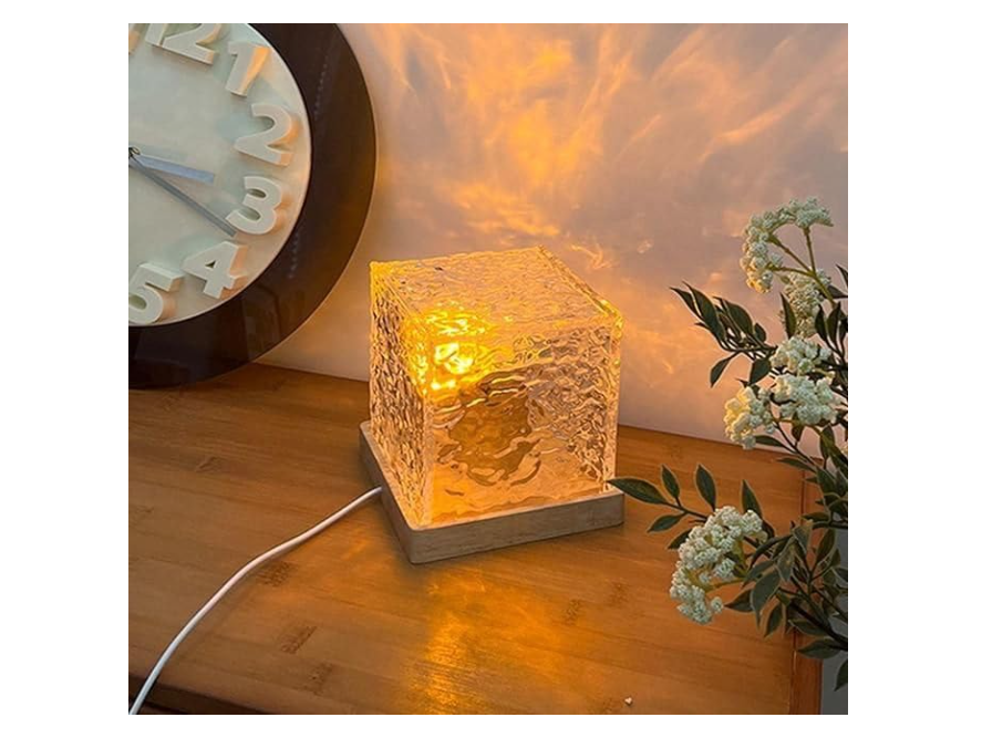 ضوء ليلي عصري مربع الشكل بتموجات مائية ثلاثي اللون وقابل للشحن