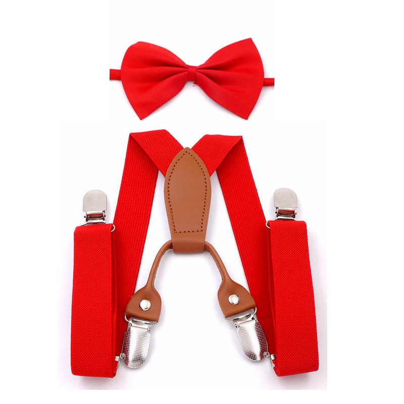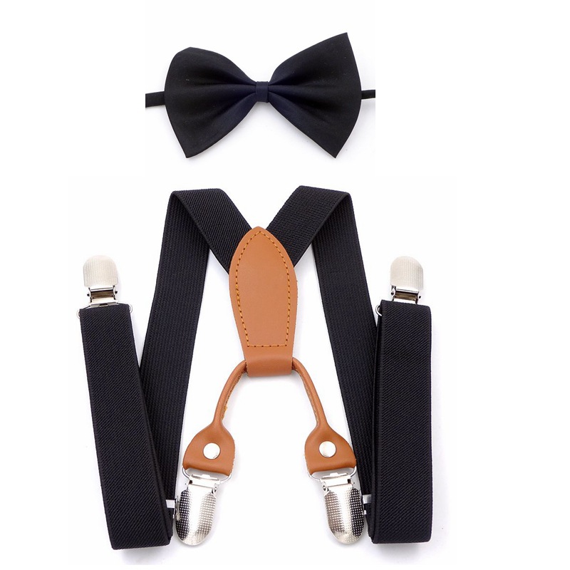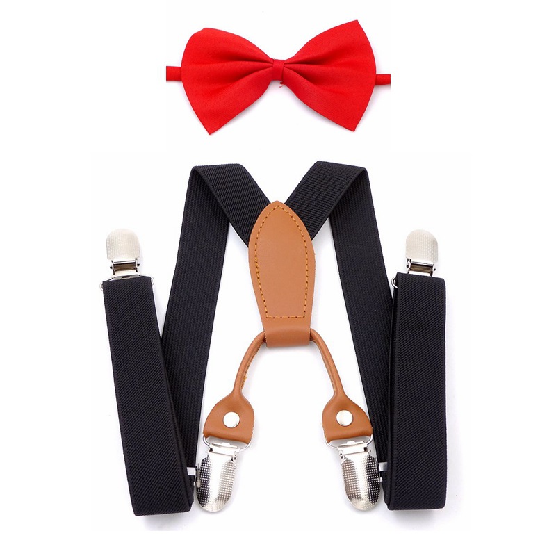 حزام قماشي مرن بأربعة مشابك وربطة عنق للأطفال