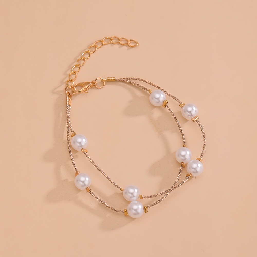 أساور أنيقة من اللؤلؤ قابلة للتعديل بطبقتين للسيدات