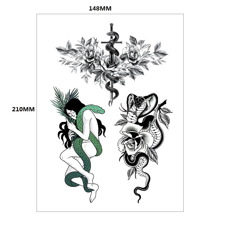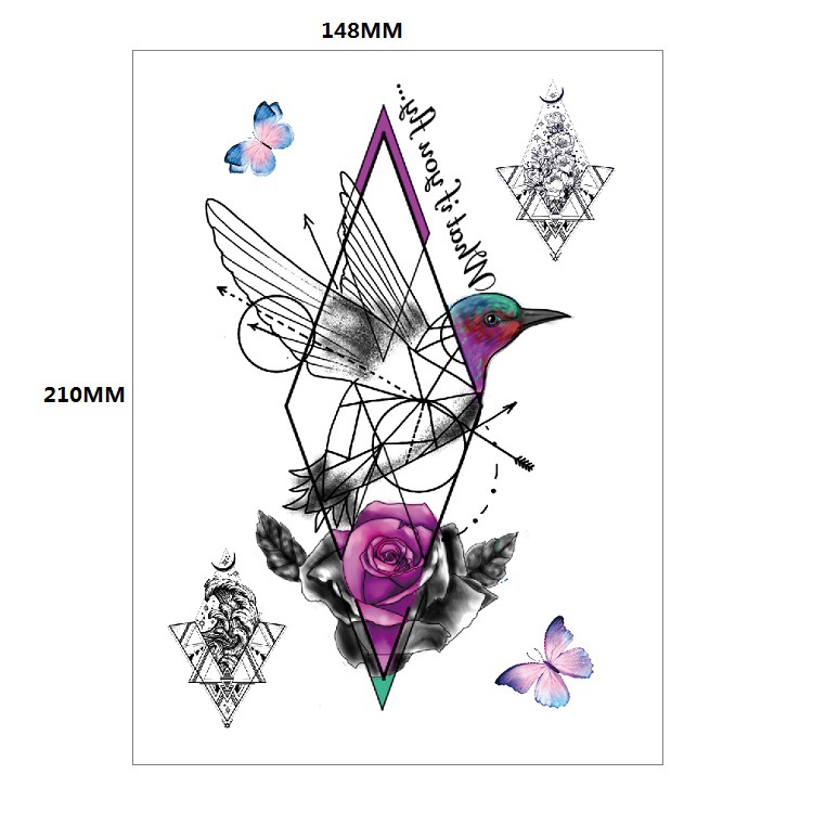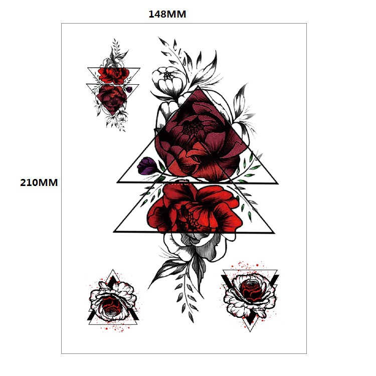 تاتو فني ملون بنقوش زهور وهندسات فنية / 4 قطع
