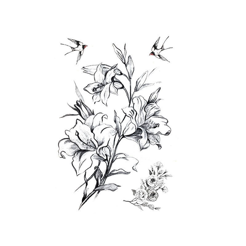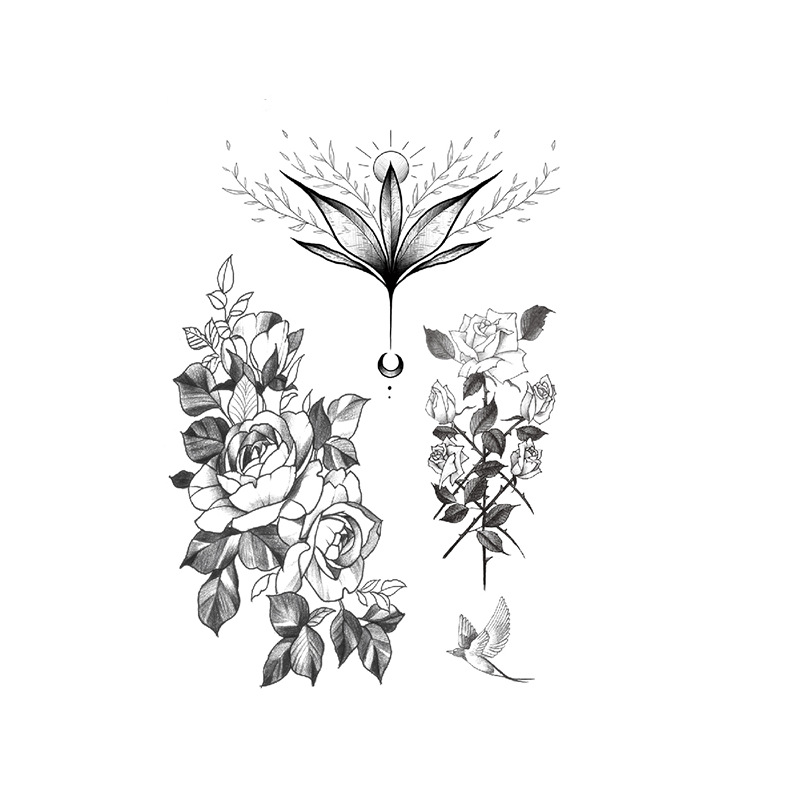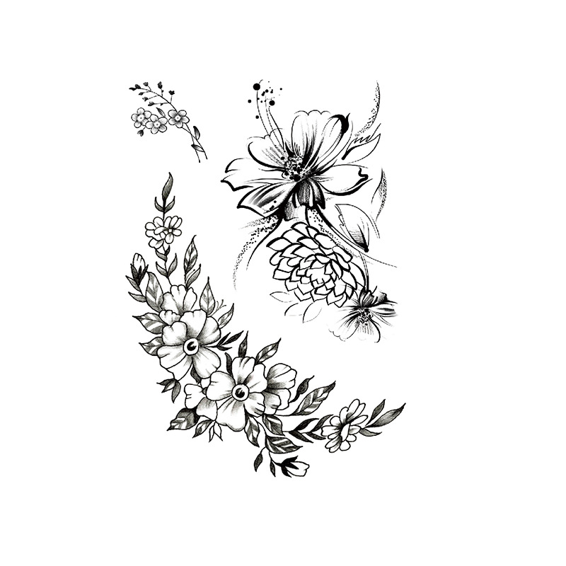 تاتو أسود بأشكال زهور بلمسة جمالية فريدة / 4 قطع