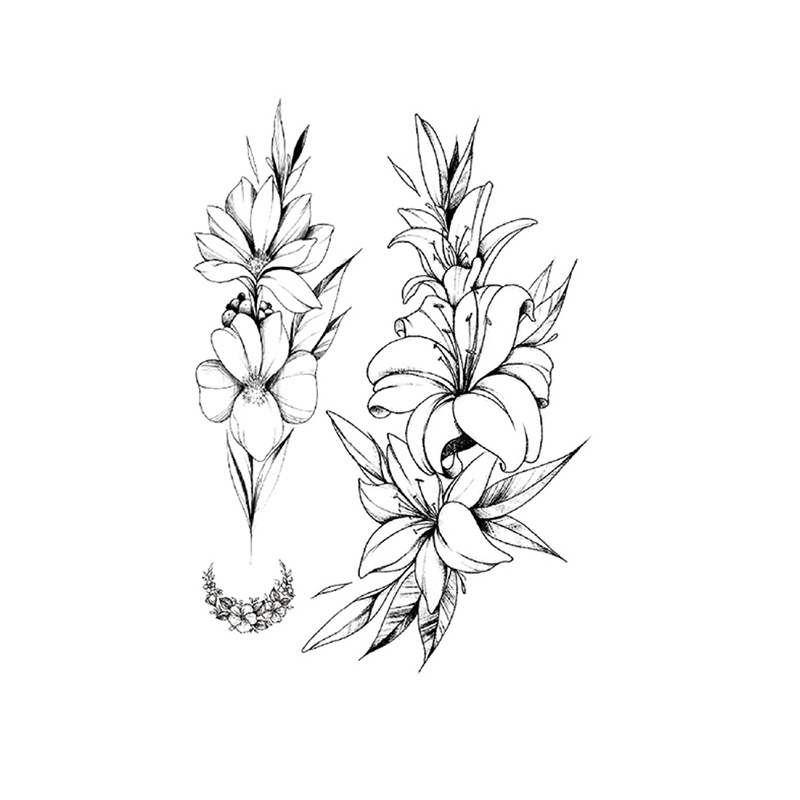 تاتو أسود اللون يضم ورد وزهرات متنوعة / 3 قطع