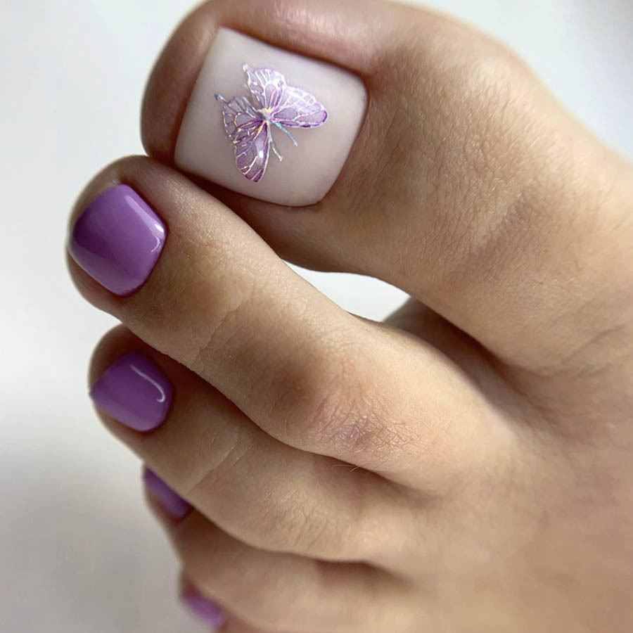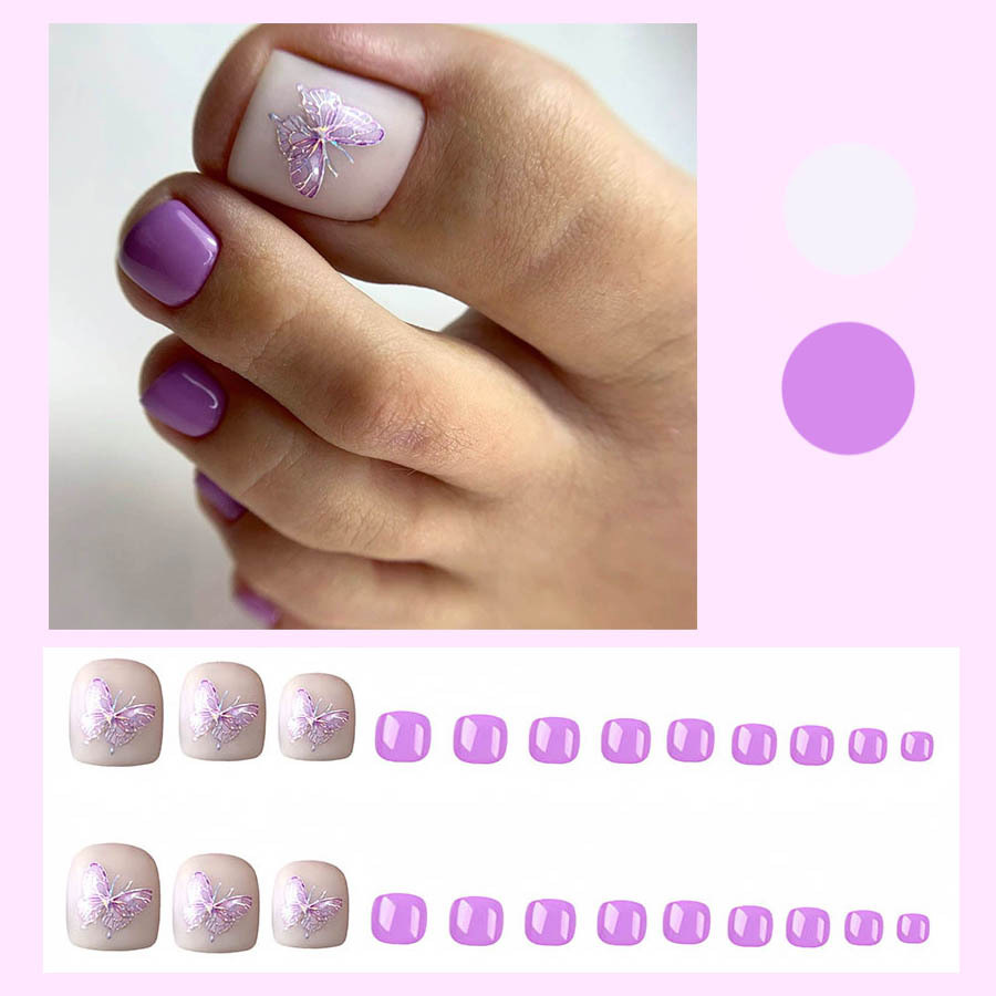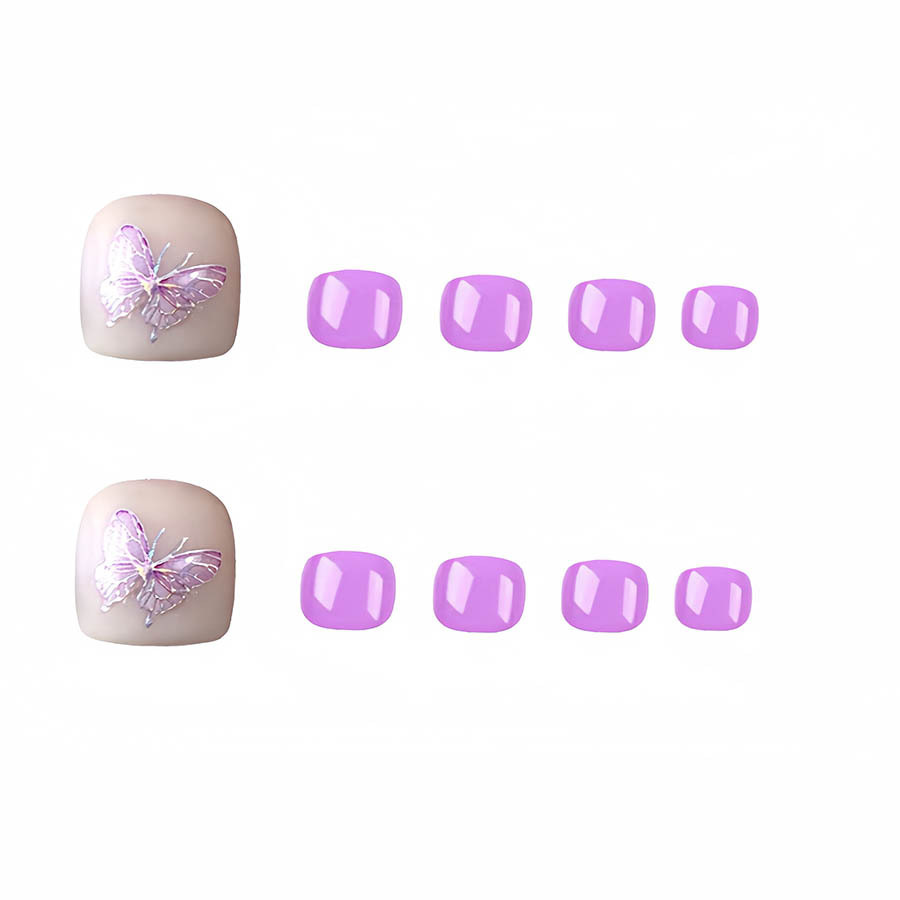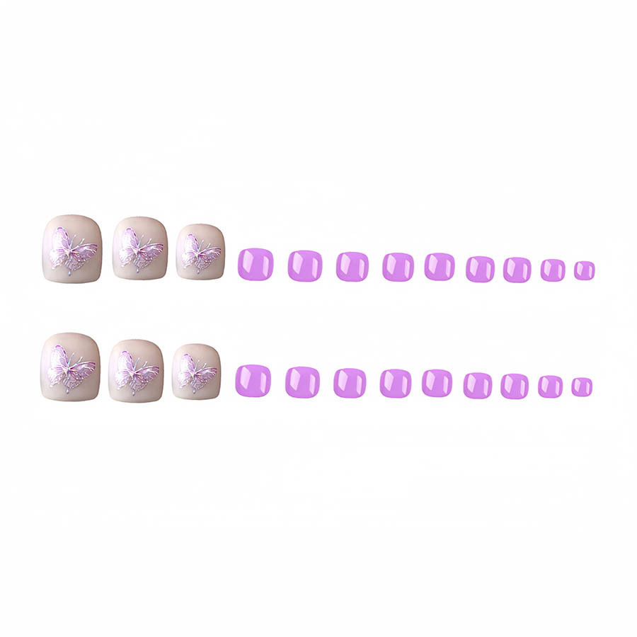 أظافر بلون أرجواني شكل فراشة نقية لامعة - 24 قطعة