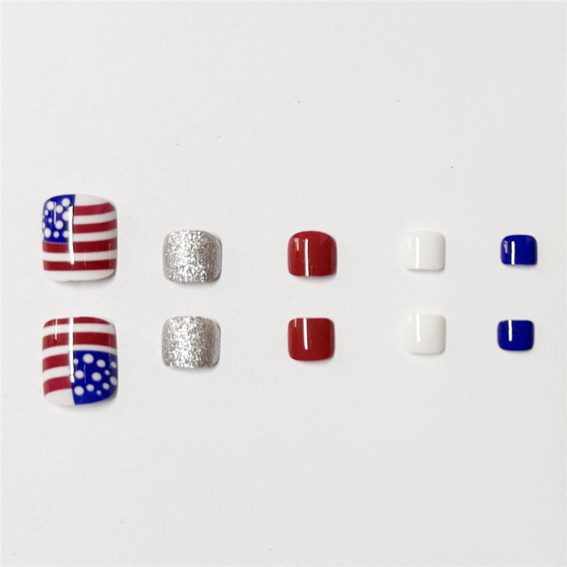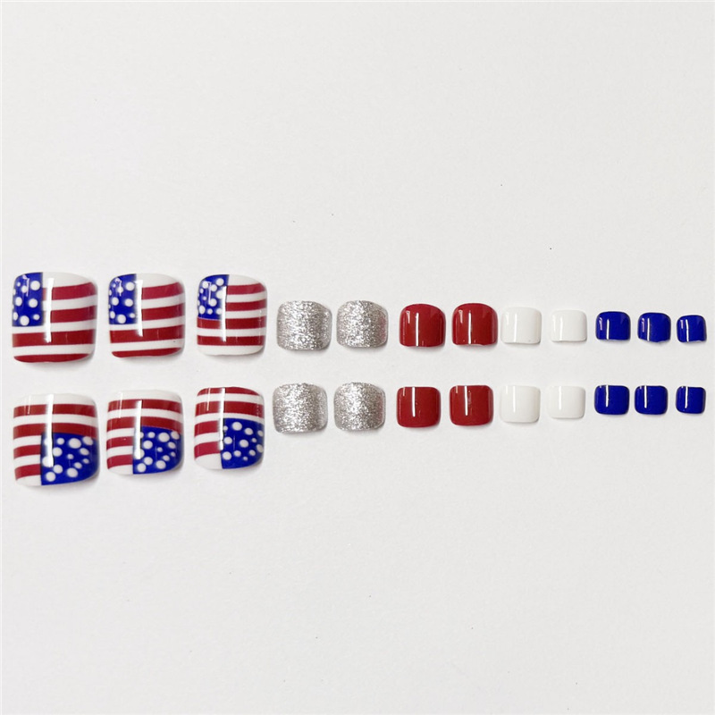 أظافر قدم مربعة بشكل يوم الاستقلال- 24 قطعة