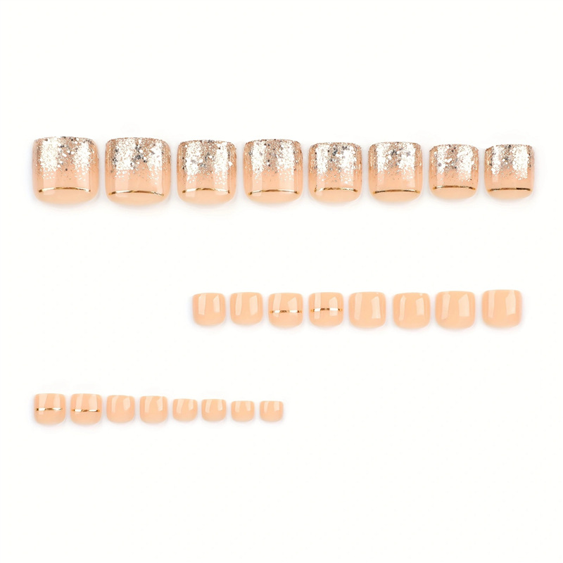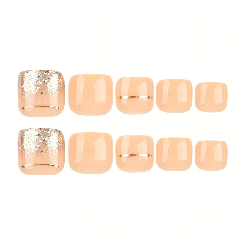 أظافر مربعة بلون ناعم ولمعة أنيقة سهلة الفصل – 24 قطعة