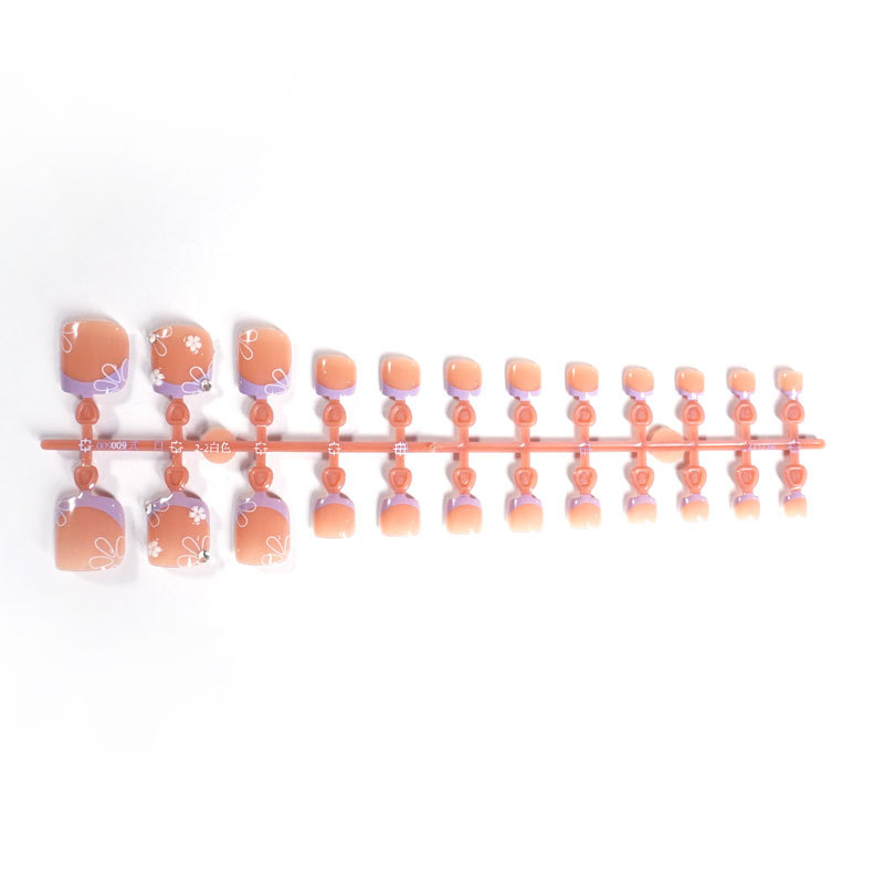 أطراف أظافر قدم بنقشة زهور صغيرة وحواف فرنسية بيضاء – طقم 24 قطعة