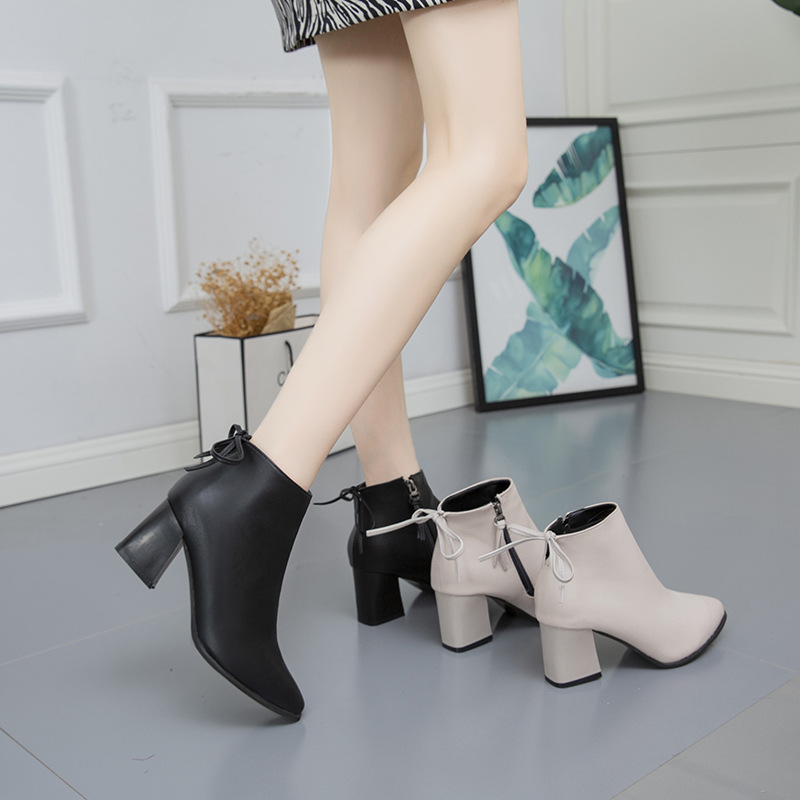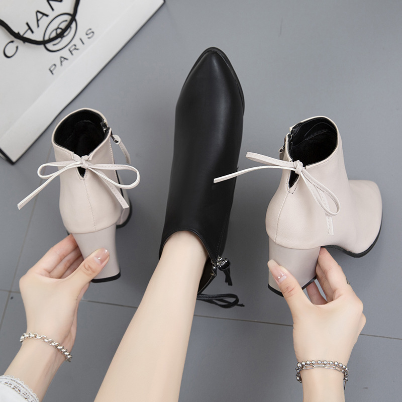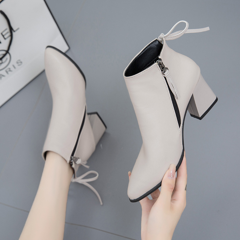 حذاء جلدي متين بكعب عريض ومتوسط لستايل أنيق وجذاب يناسب المواسم الباردة