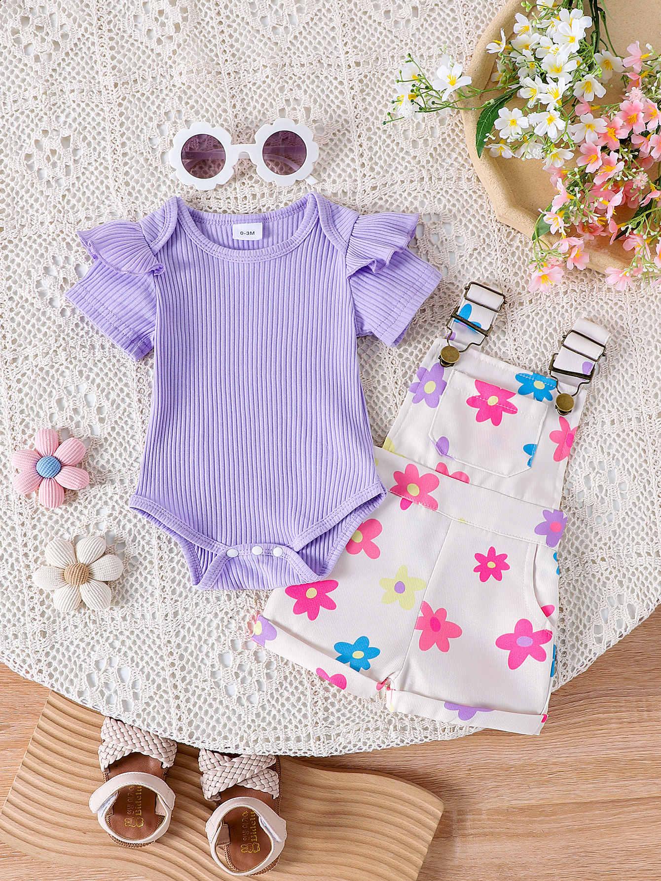 أوفرول بناتي بطبعة عديدة مع بلوزة ناعمة مزيج مثالي من الراحة والستايل