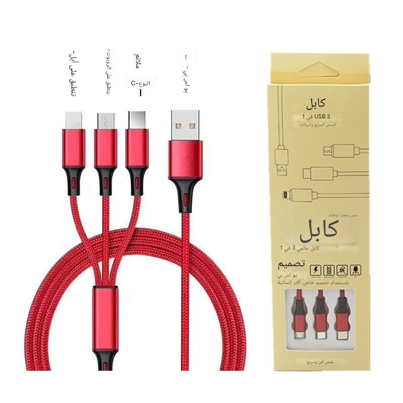 | وصف | كابل بيانات مضفر من النايلون 3 في 1 مع رؤوس متعددة - كابل شحن للهاتف المحمول 3 في 1 - لايتنينج، مايكرو يو إس بي، تايب سي - |